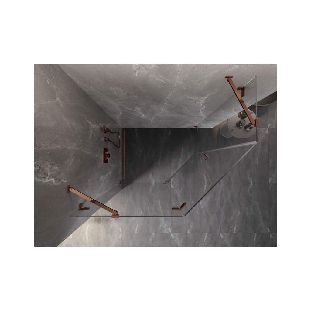 Mexen Lunar, Päťuholníkový sprchový kút Mexen Lunar s výklopným ľavým oknom 100 x 90 cm, 8mm číre sklo, profil ružové zlato, 831-100L-090P-60-00-L
