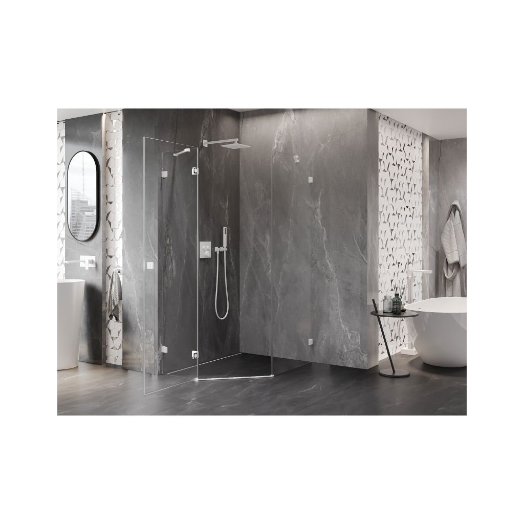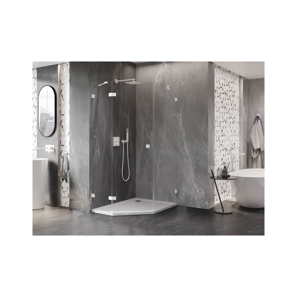 Mexen Lunar, Päťuholníkový sprchový kút Mexen Lunar s výklopným ľavým oknom 80 x 90 cm, 8mm číre sklo, biely profil, 831-080L-090P-01-20-L
