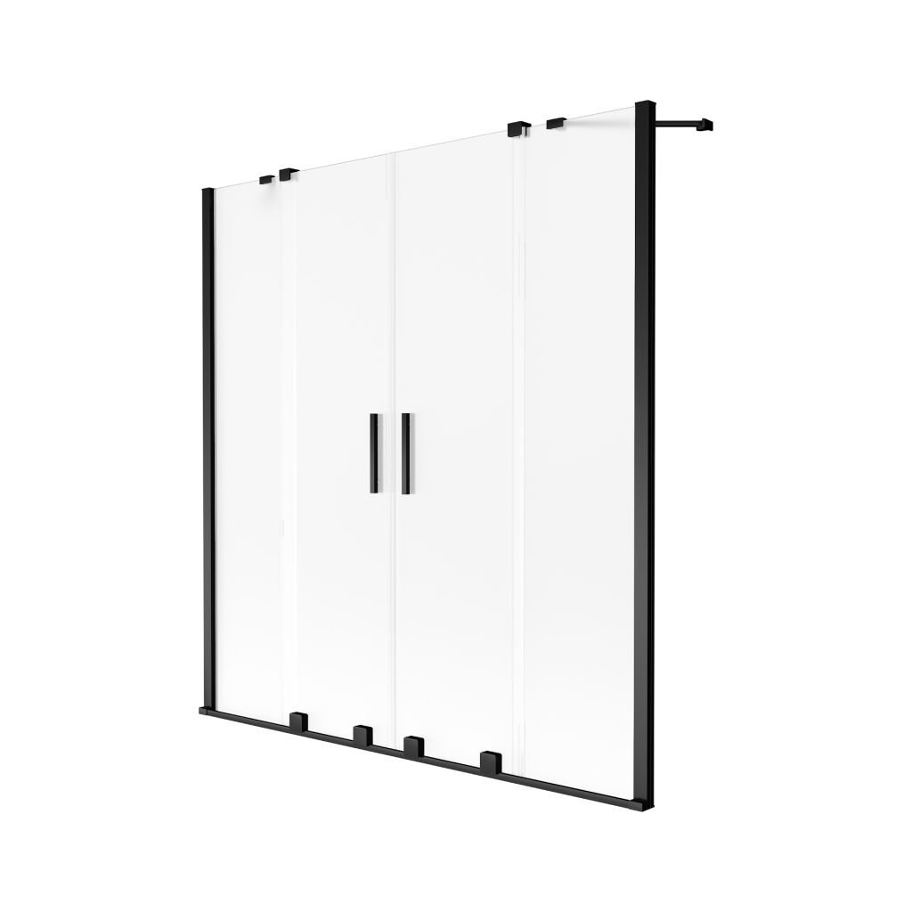 Mexen Velar Duo, 2-krídlová vaňová zástena s posuvnými dverami 140 x 150 cm, námraza, čierny matný profil, 896-140-000-32-70