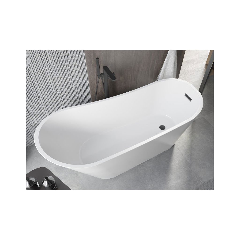 Mexen Alta, voľne stojaca vaňa 170 x 75 cm, biela, čierny matný prepad, 52141707500-70