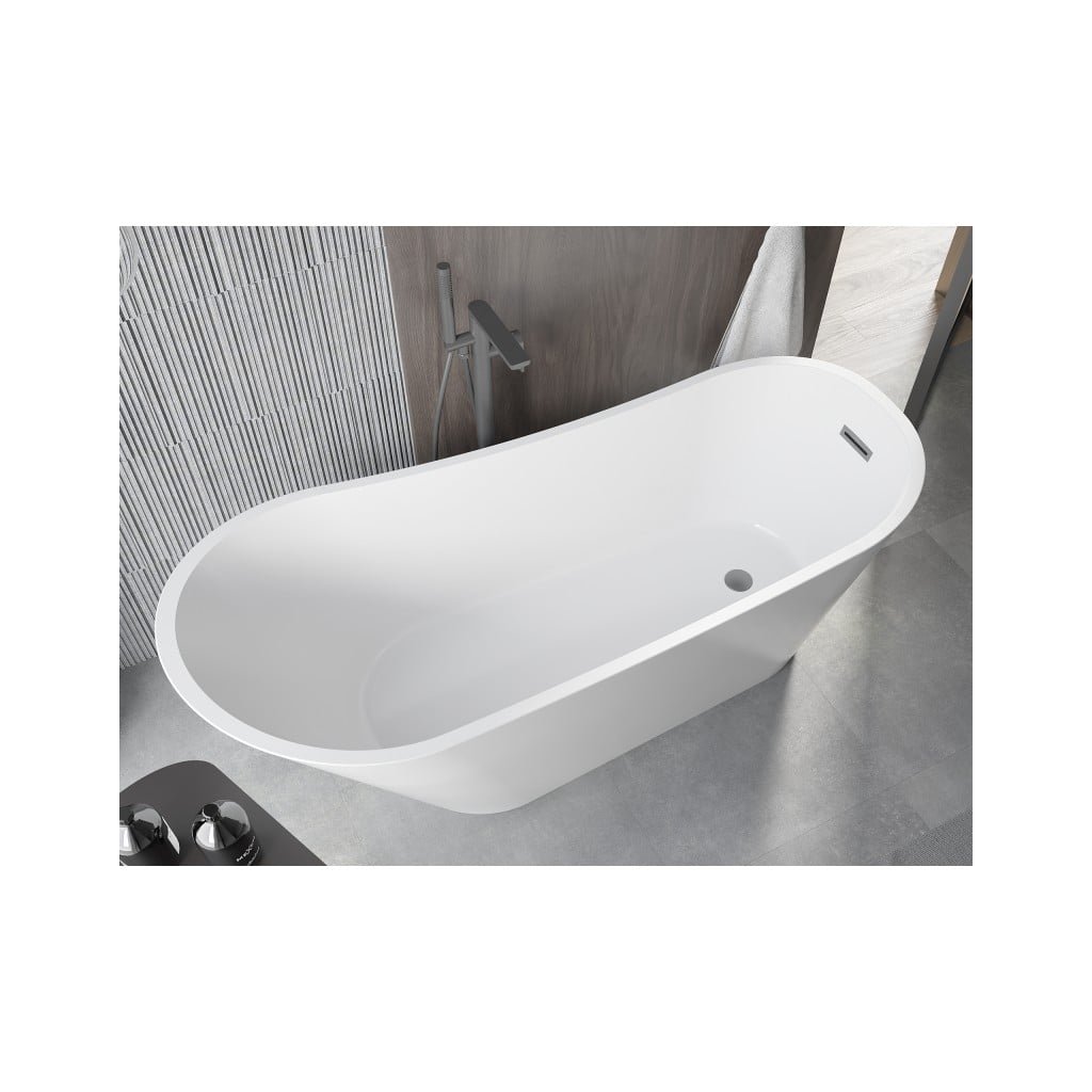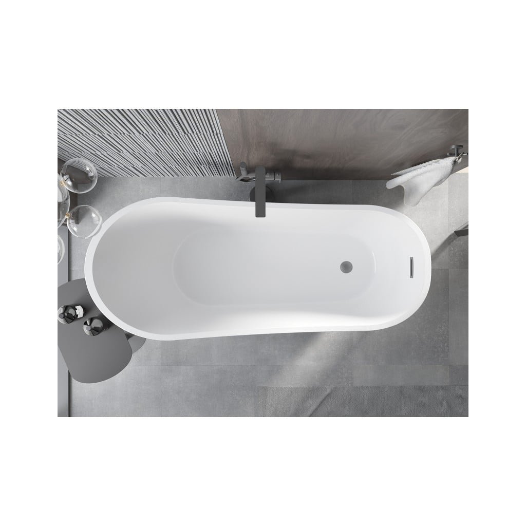Mexen Alta, voľne stojaca vaňa 170 x 75 cm, biela, grafitový matný hladký prepad, 52141707500-95