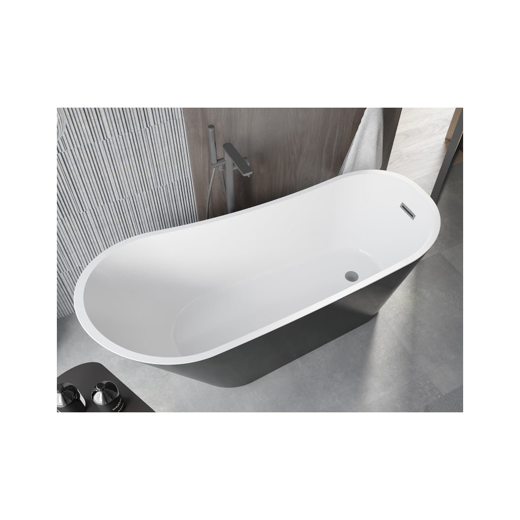 Mexen Alta, voľne stojaca vaňa 170 x 75 cm, biela-čierna, grafitový matný hladký prepad, 52141707575-95