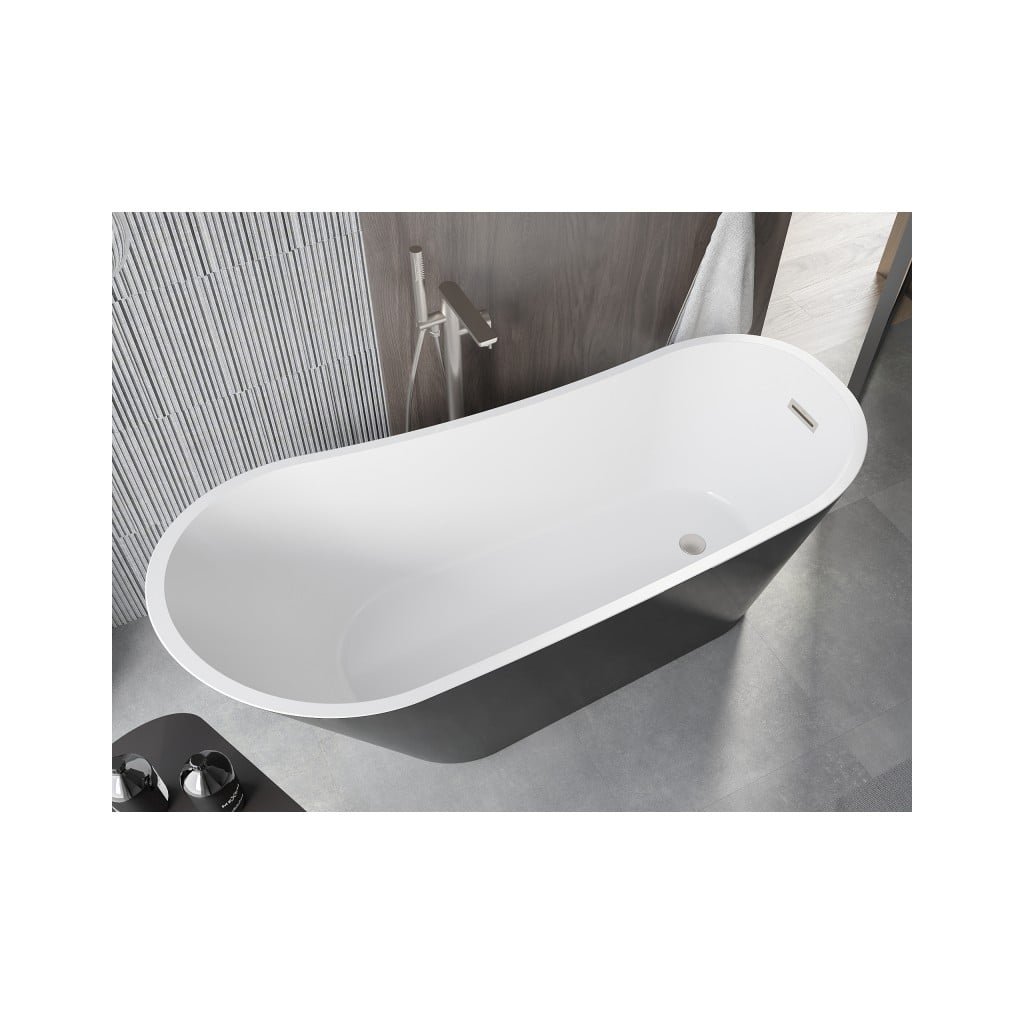 Mexen Alta, voľne stojaca vaňa 170 x 75 cm, biela-čierna, oceľový prepad, 52141707575-97