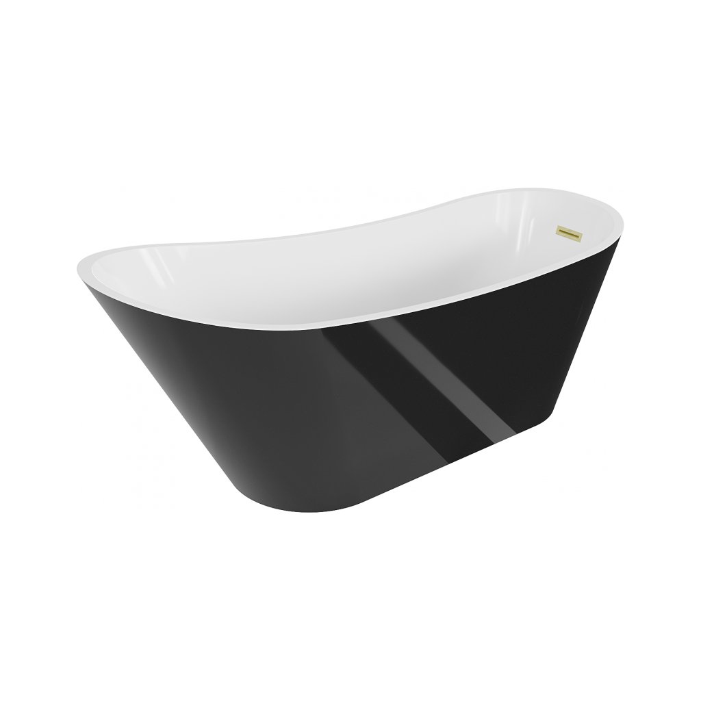 Mexen Alta, voľne stojaca vaňa 170 x 75 cm, biela-čierna, zlatý matný prepad, 52141707575-55