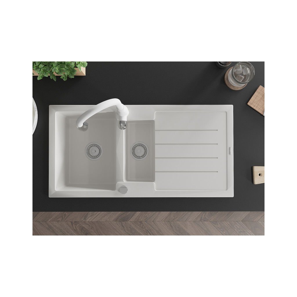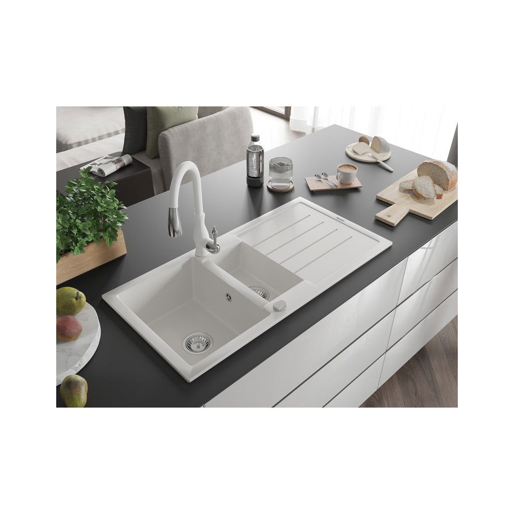 Mexen Andres, 1,5-komorový granitový drez 1000x500x200 mm a drezová batéria Savita, biela, 6515-20-672601-20