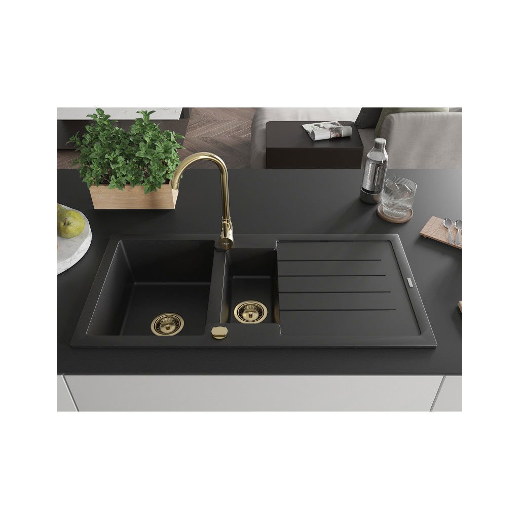 Mexen Andres, granitový drez 1000x500x200 mm, 1,5-komorový, čierna so zlatým sifónom, 6515101510-77-G