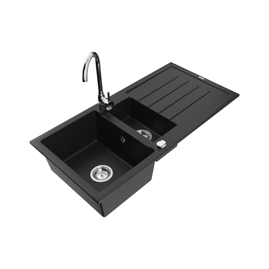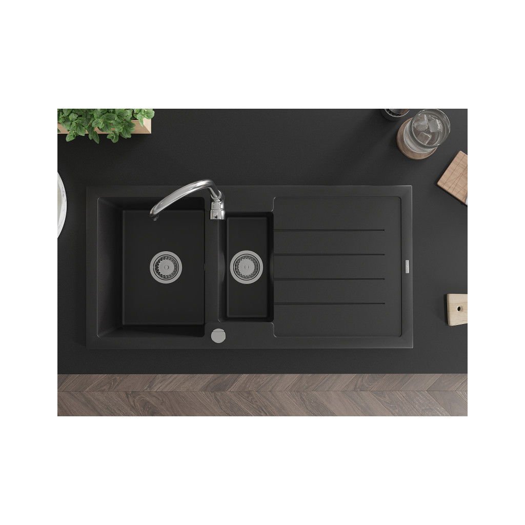 Mexen Andres 1,5-komorový granitový kuchynský drez s odkvapkávačom 100x50 cm a kuchynská batéria Telma, čierna, 6515-77-670200-00