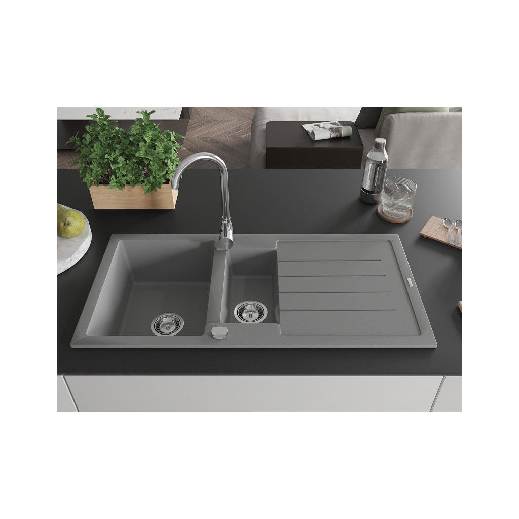 Mexen Andres 1,5-komorový granitový kuchynský drez s odkvapkávačom 100x50 cm a kuchynská batéria Telma, šedá, 6515-71-670200-00