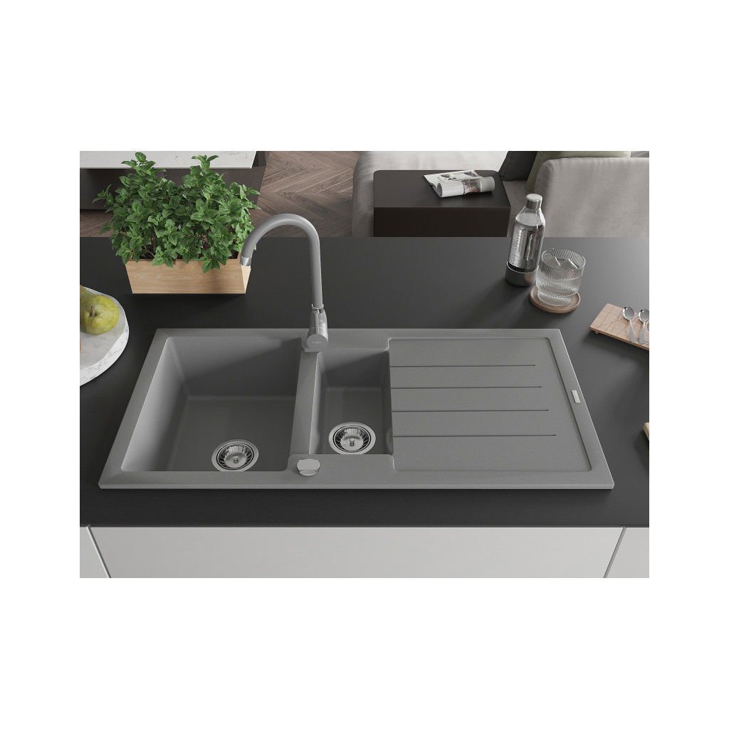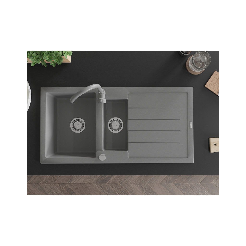 Mexen Andres 1,5-komorový granitový kuchynský drez s odkvapkávačom 100x50 cm a kuchynská batéria Telma, šedá, 6515-71-670200-71