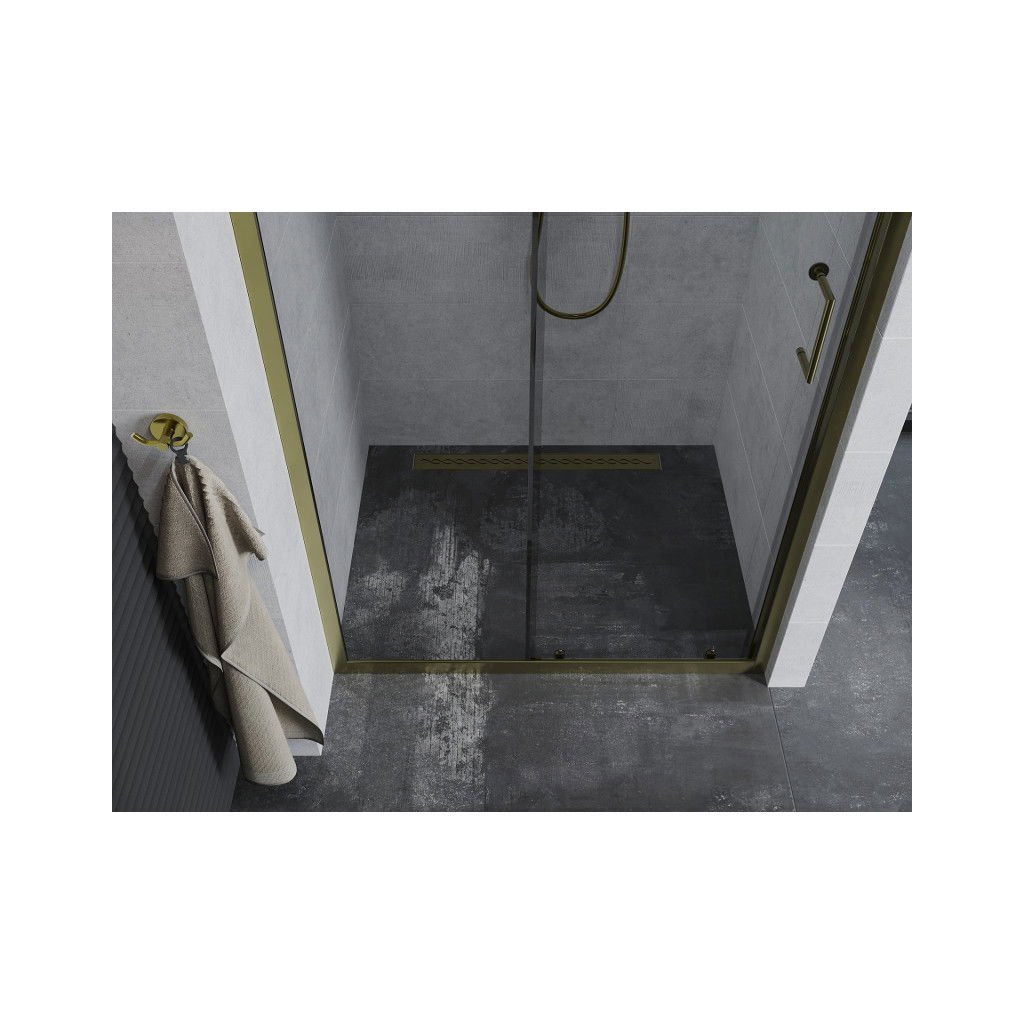 Mexen Apia, posuvné dvere do otvoru 105 x 190 cm, 5mm číre sklo, zlatý profil, 845-105-000-50-00