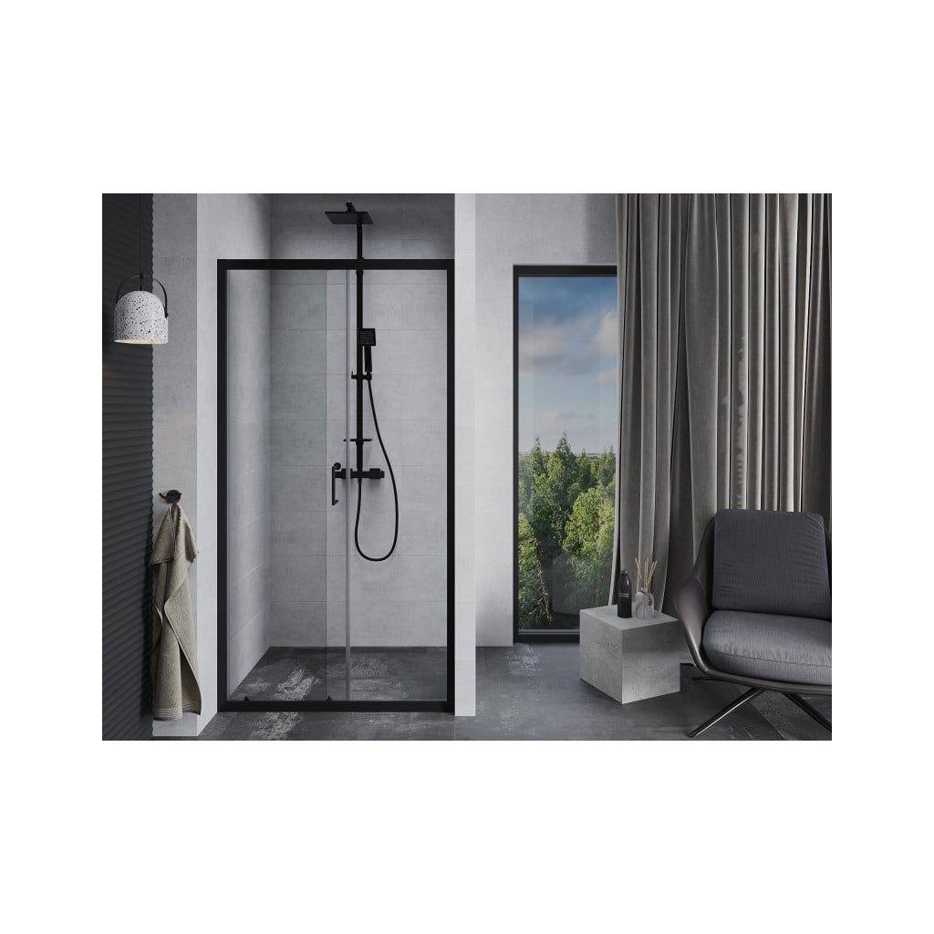 Mexen Apia, posuvné dvere do otvoru 135 x 190 cm, 6mm číre sklo, čierny profil, 845-135-000-70-00
