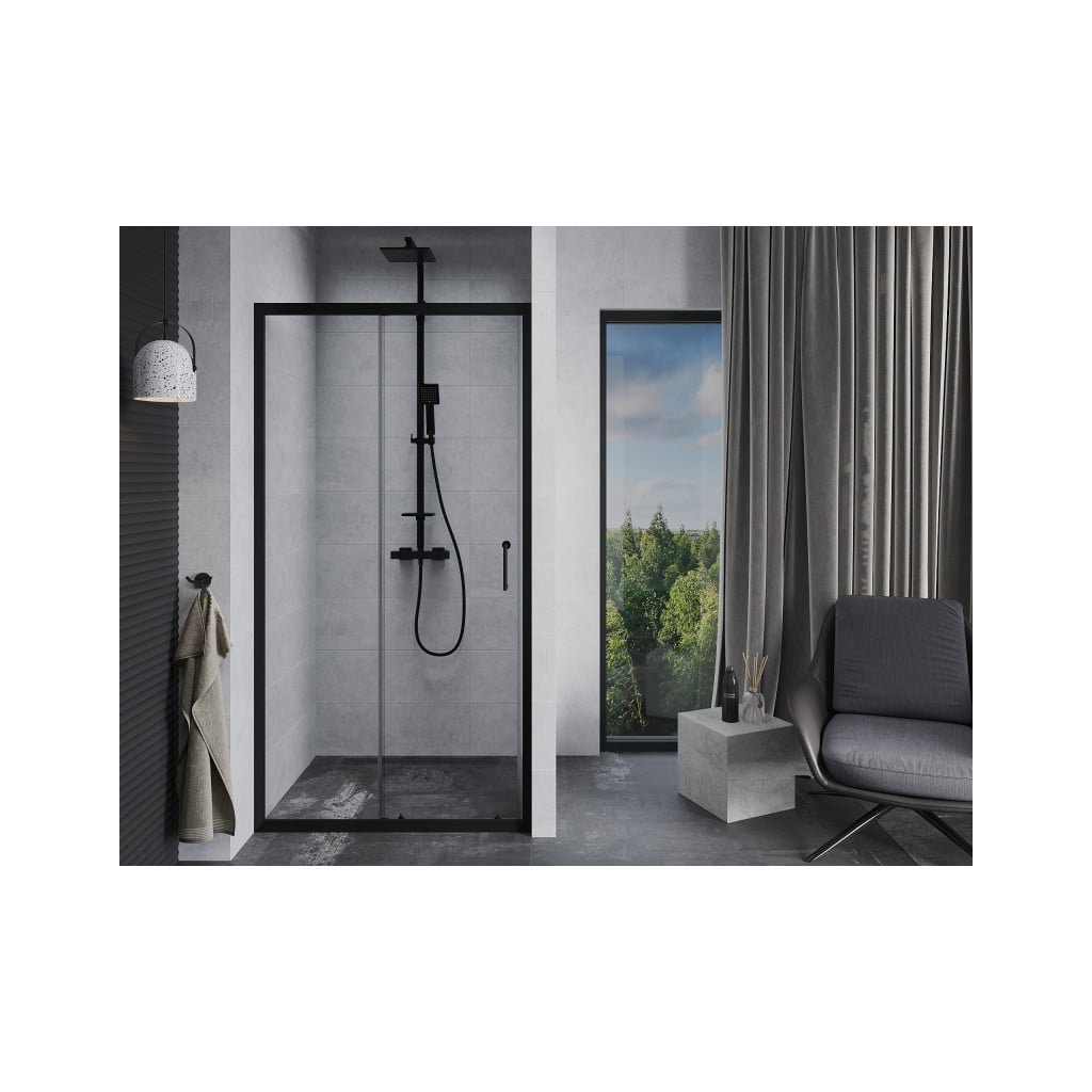 Mexen Apia, posuvné dvere do otvoru 150 x 190 cm, 6mm číre sklo, čierny profil, 845-150-000-70-00