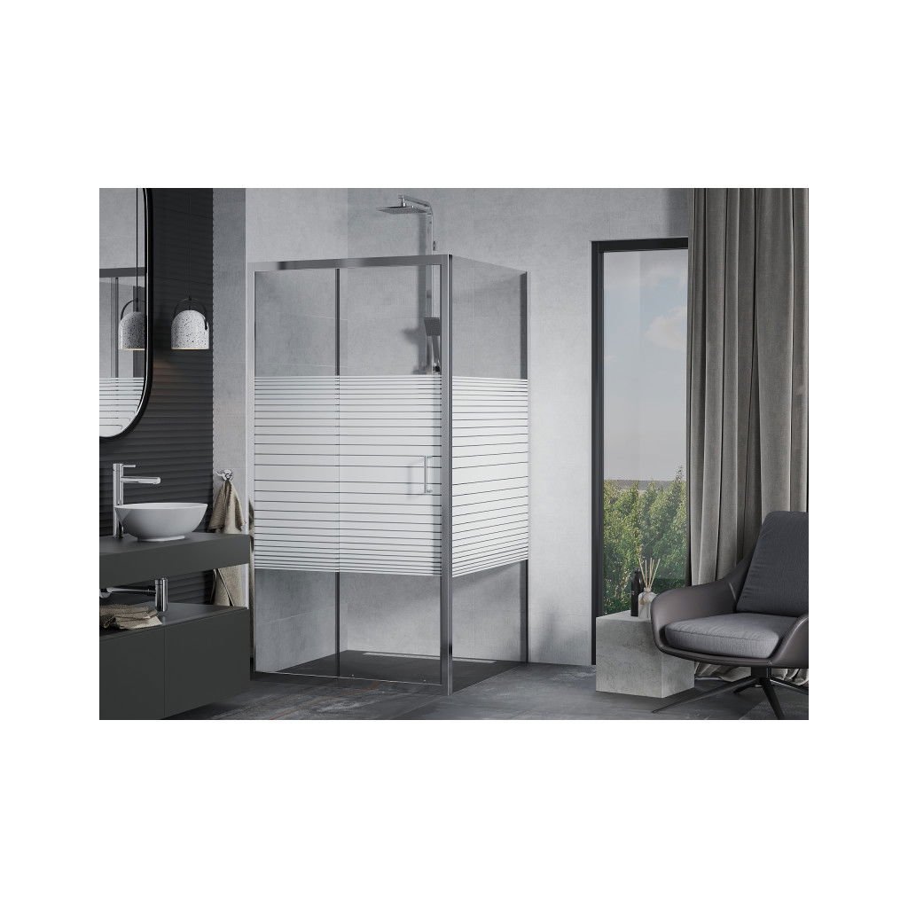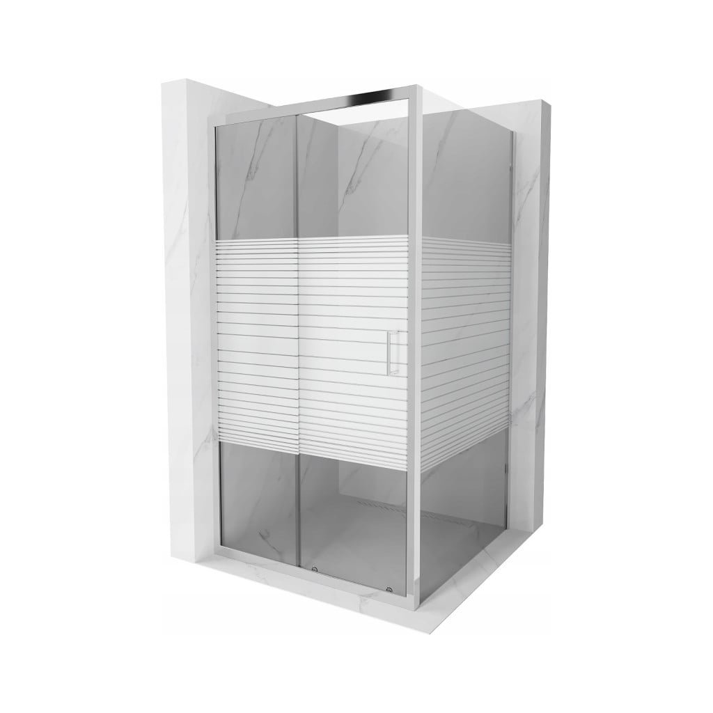 Mexen Apia, sprchový kút s posuvnými dverami 100 (dvere) x 100 (stena) cm, 6mm číre-pásy sklo, chrómový profil, 840-100-100-01-20