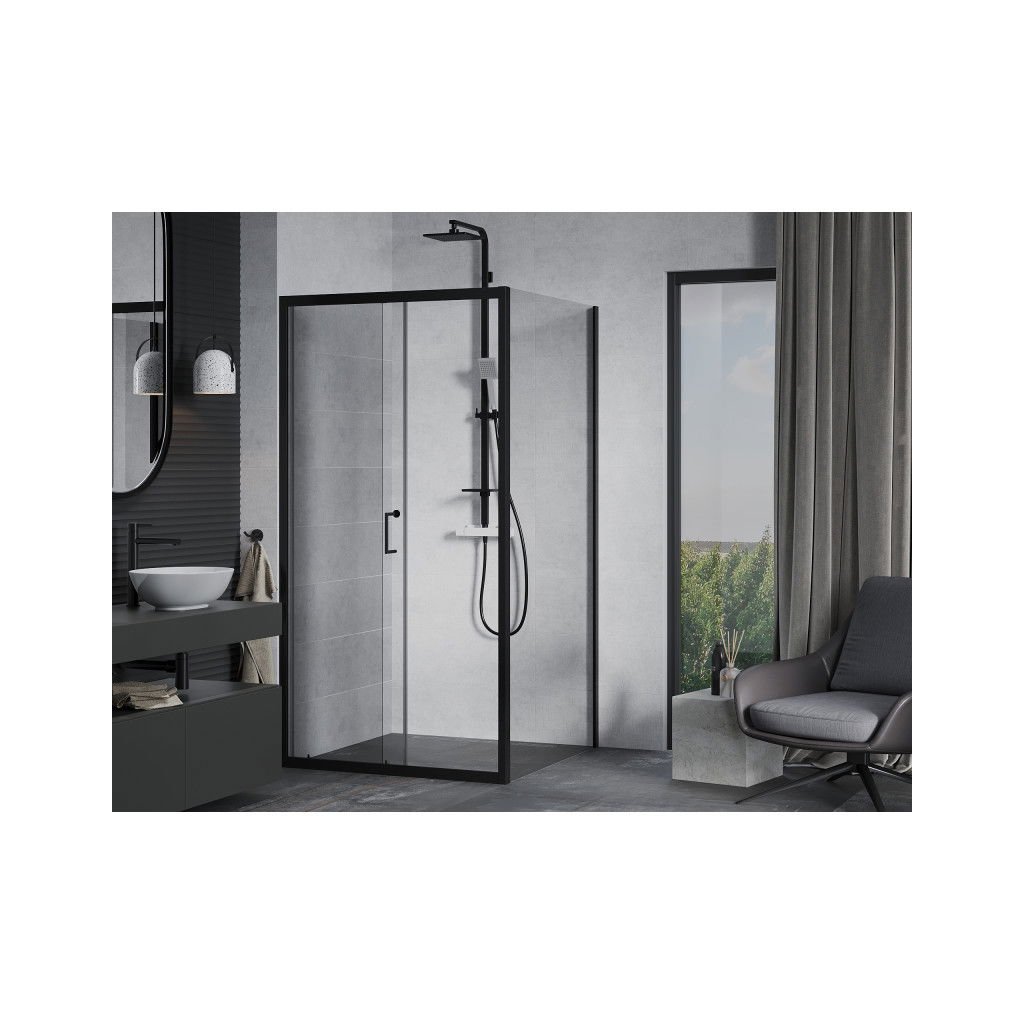 Mexen Apia, sprchový kút s posuvnými dverami 100 (dvere) x 100 (stena) cm, 6mm číre sklo, čierny profil, 840-100-100-70-00