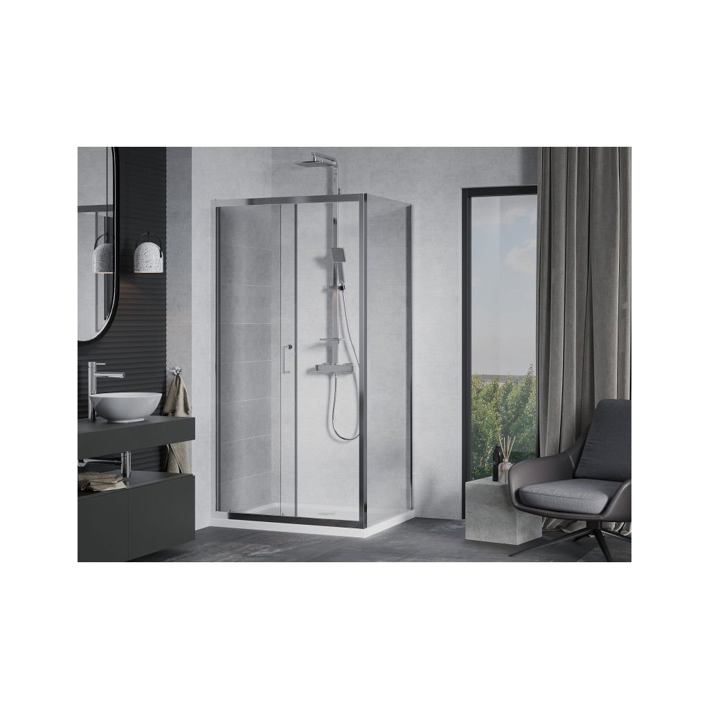 Mexen Apia, sprchový kút s posuvnými dverami 100 (dvere) x 80 (stena) cm, 6mm číre sklo, chrómový profil + slim sprchová vanička 5cm, 840-100-080-01-00-4010