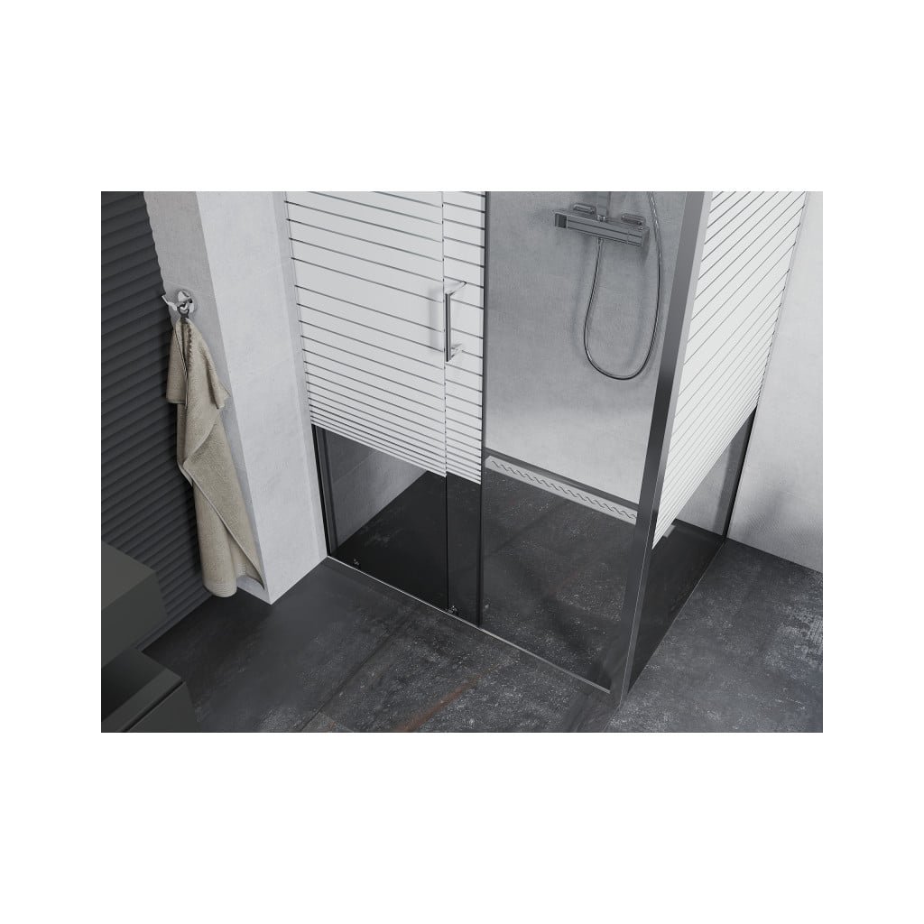 Sprchový kút zo série Mexen Apia je skvelá voľba vyrobená z 5mm tvrdeného skla v čírom prevedení s pásikavým vzorom. Sprchové posuvné dvere obsahujú spoľahlivé dvojité koliečka, ktoré zaručujú hladké a tiché posúvanie. Na otváranie slúži decentná kovová rukoväť. Špeciálny poťah na skle uľahčuje jeho umývanie a umožňuje Vám tak si užiť dokonale priehľadné a lesklé sklo dlhšie. Tvrdené a bezpečné sklo a prvky povrchovej úpravy dverí boli vyrobené z nehrdzavejúceho materiálu potiahnutého vysoko lesklým chrómom. Hliníkový profil s prahom zaručuje dokonalú tesnosť. Inštalácia je možná na sprchovú vaničku alebo dlažbu (sprchová vanička ani odtokový žľab nie sú súčasťou balenia ale môžete si ich zakúpiť v našom obchode). Osadenie sprchového kútu je univerzálne, v ľavom alebo pravom prevedení.