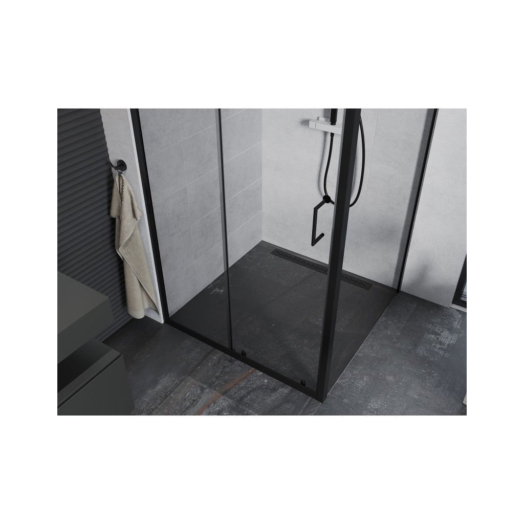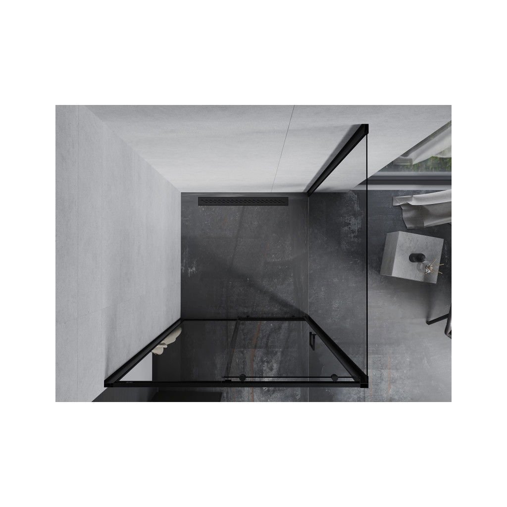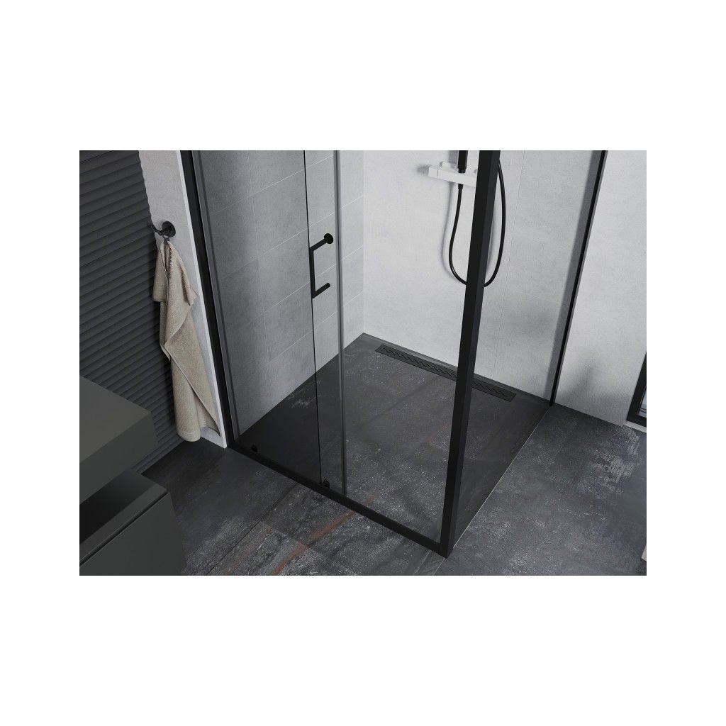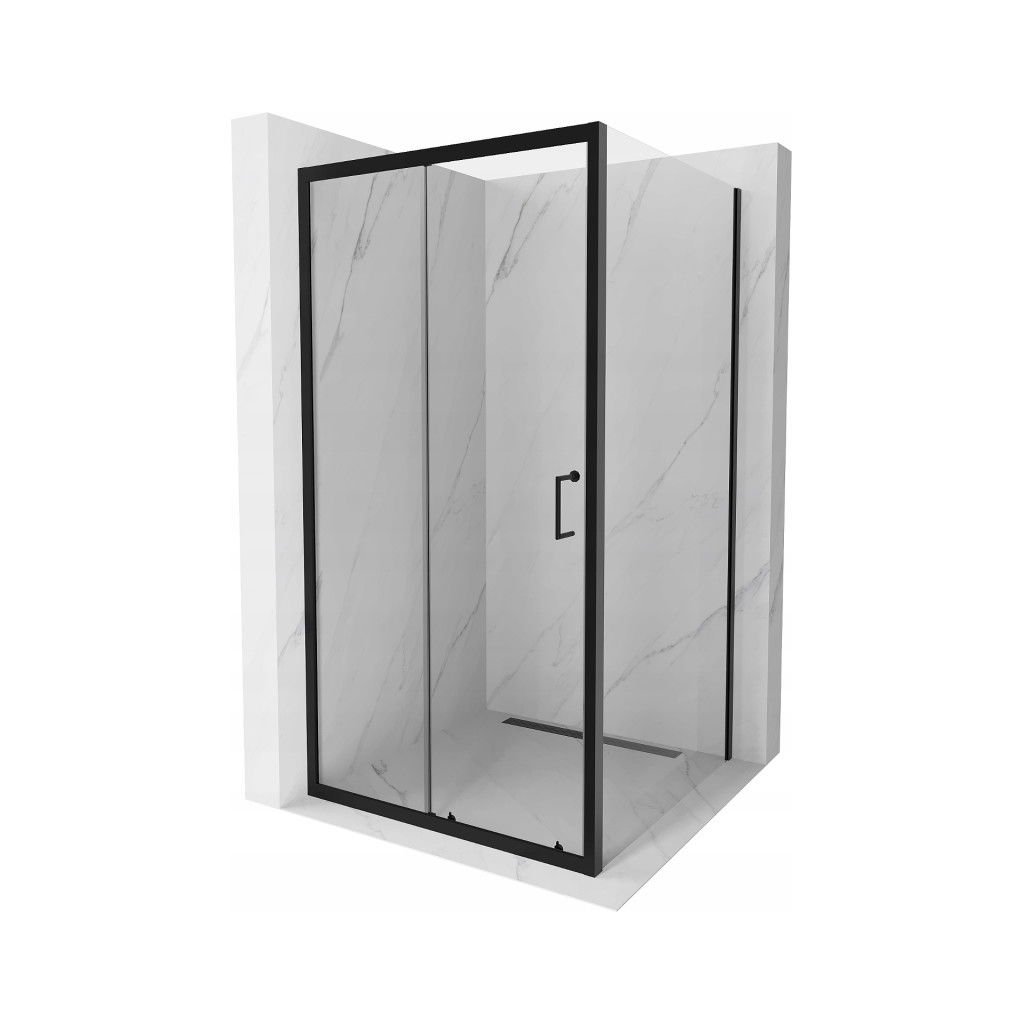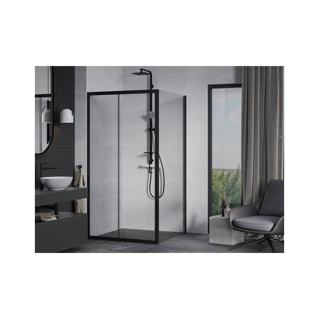 Mexen Apia, sprchový kút s posuvnými dverami 90 (dvere) x 90 (stena) cm, 6mm číre sklo, čierny profil, 840-090-090-70-00