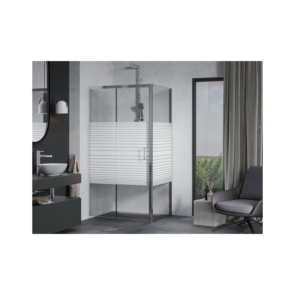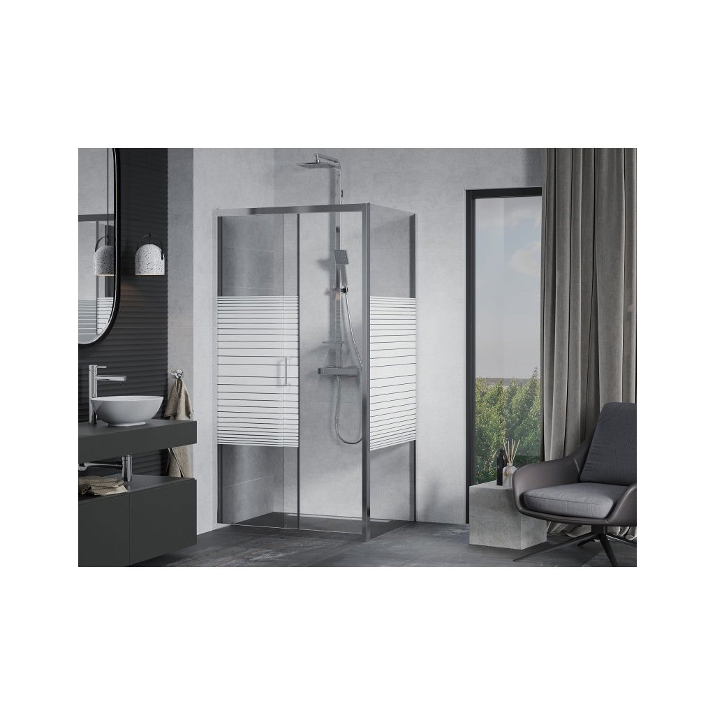 Sprchový kút zo série Mexen Apia je skvelá voľba vyrobená z 5mm tvrdeného skla v čírom prevedení s pásikavým vzorom. Sprchové posuvné dvere obsahujú spoľahlivé dvojité koliečka, ktoré zaručujú hladké a tiché posúvanie. Na otváranie slúži decentná kovová rukoväť. Špeciálny poťah na skle uľahčuje jeho umývanie a umožňuje Vám tak si užiť dokonale priehľadné a lesklé sklo dlhšie. Tvrdené a bezpečné sklo a prvky povrchovej úpravy dverí boli vyrobené z nehrdzavejúceho materiálu potiahnutého vysoko lesklým chrómom. Hliníkový profil s prahom zaručuje dokonalú tesnosť. Inštalácia je možná na sprchovú vaničku alebo dlažbu (sprchová vanička ani odtokový žľab nie sú súčasťou balenia ale môžete si ich zakúpiť v našom obchode). Osadenie sprchového kútu je univerzálne, v ľavom alebo pravom prevedení.