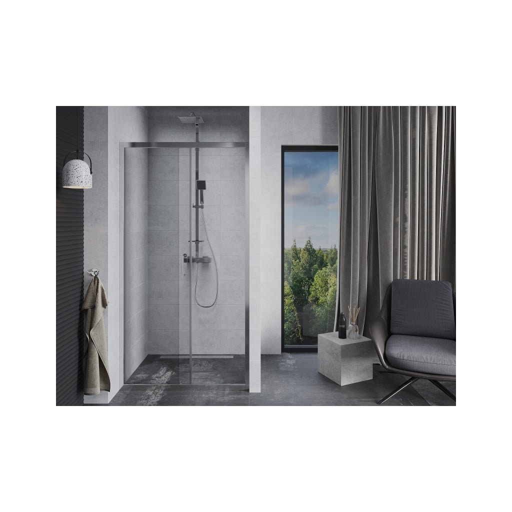 Sprchové dvere zo zbierky Mexen Apia. Funkčné posuvné dvere so spoľahlivými dvojitými koliečkami, ktoré zaručujú hladké a tiché posúvanie. Poťah na skle uľahčuje ich umývanie a umožňuje vám tak si užiť dokonale priehľadné a lesklé sklo dlhšie. Tvrdené a bezpečné sklo a prvky povrchovej úpravy dverí boli vyrobené z nehrdzavejúceho materiálu potiahnutého vysoko lesklým chrómom. Hliníkový profil s prahom, ktorý zaručuje dokonalú tesnosť. Inštalácia do stenového otvoru na sprchovú vaničku alebo dlažbu.