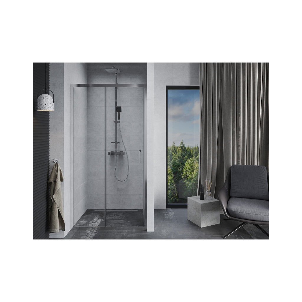Sprchové dvere zo zbierky Mexen Apia. Funkčné posuvné dvere so spoľahlivými dvojitými koliečkami, ktoré zaručujú hladké a tiché posúvanie. Poťah na skle uľahčuje ich umývanie a umožňuje vám tak si užiť dokonale priehľadné a lesklé sklo dlhšie. Tvrdené a bezpečné sklo a prvky povrchovej úpravy dverí boli vyrobené z nehrdzavejúceho materiálu potiahnutého vysoko lesklým chrómom. Hliníkový profil s prahom, ktorý zaručuje dokonalú tesnosť. Inštalácia do stenového otvoru na sprchovú vaničku alebo dlažbu.