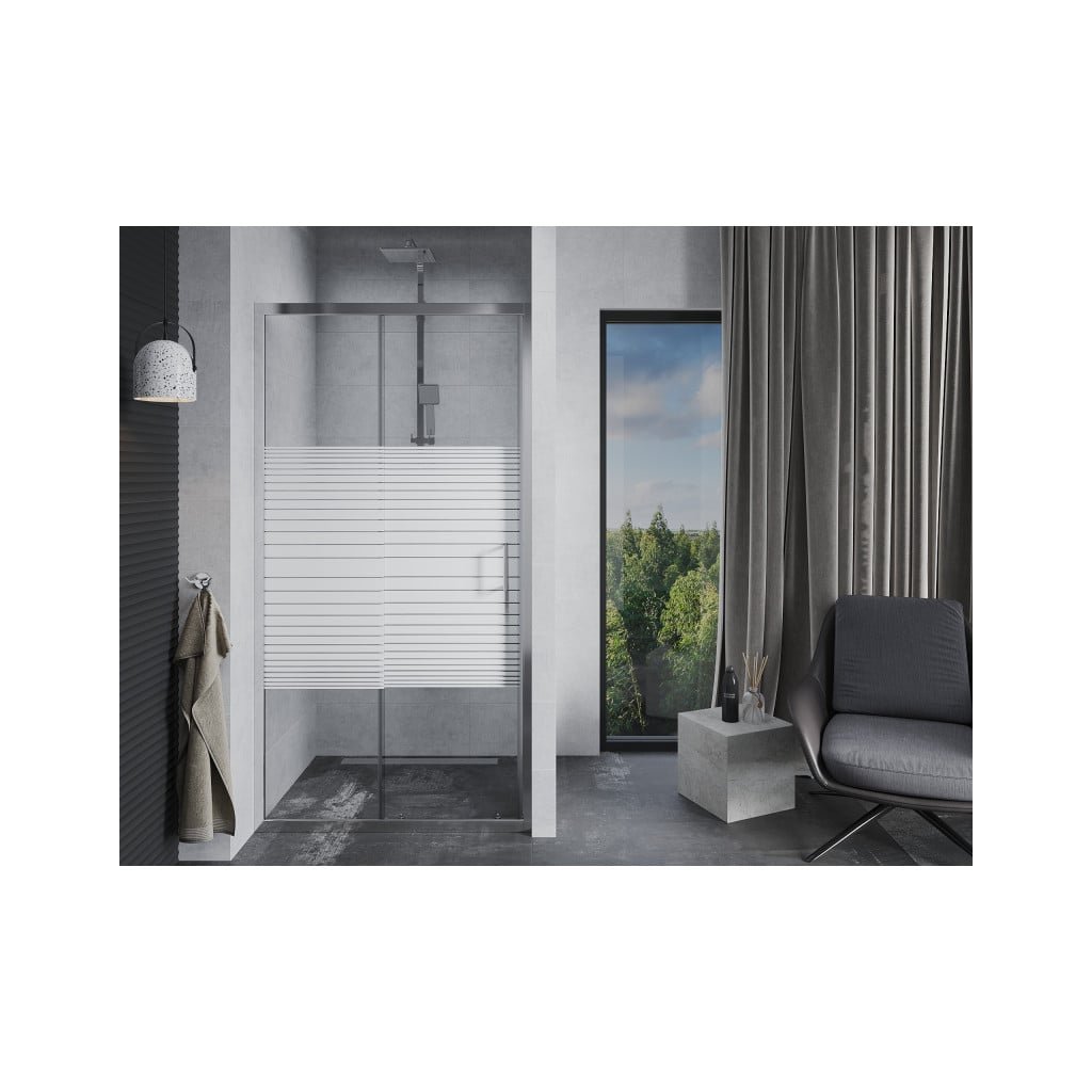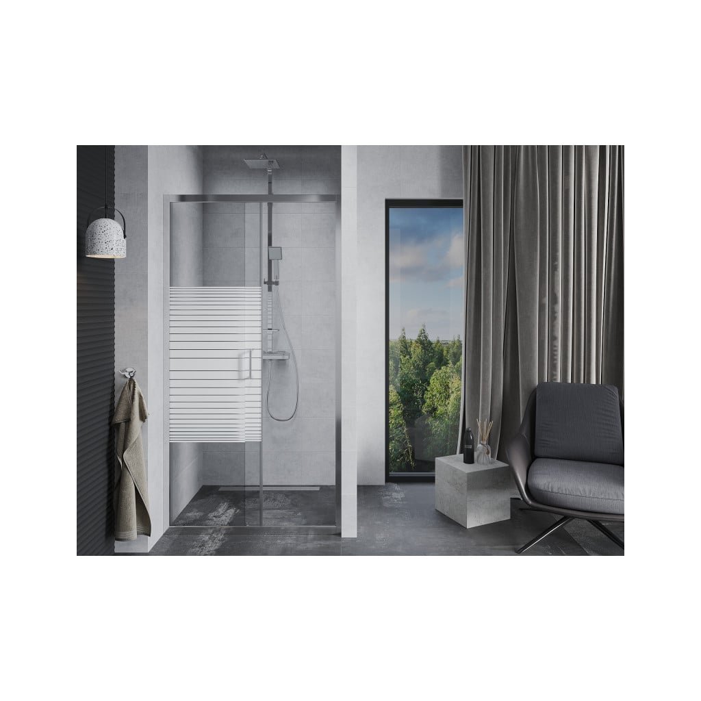 Mexen Apia, posuvné dvere do otvoru 105 x 190 cm, 6mm číre sklo-pásiky, chrómový profil, 845-105-000-01-20