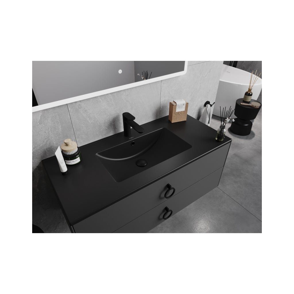 Mexen Atena, umývadlo na zapustenie do dosky 101 x 46 cm, čierna matná, 25011070