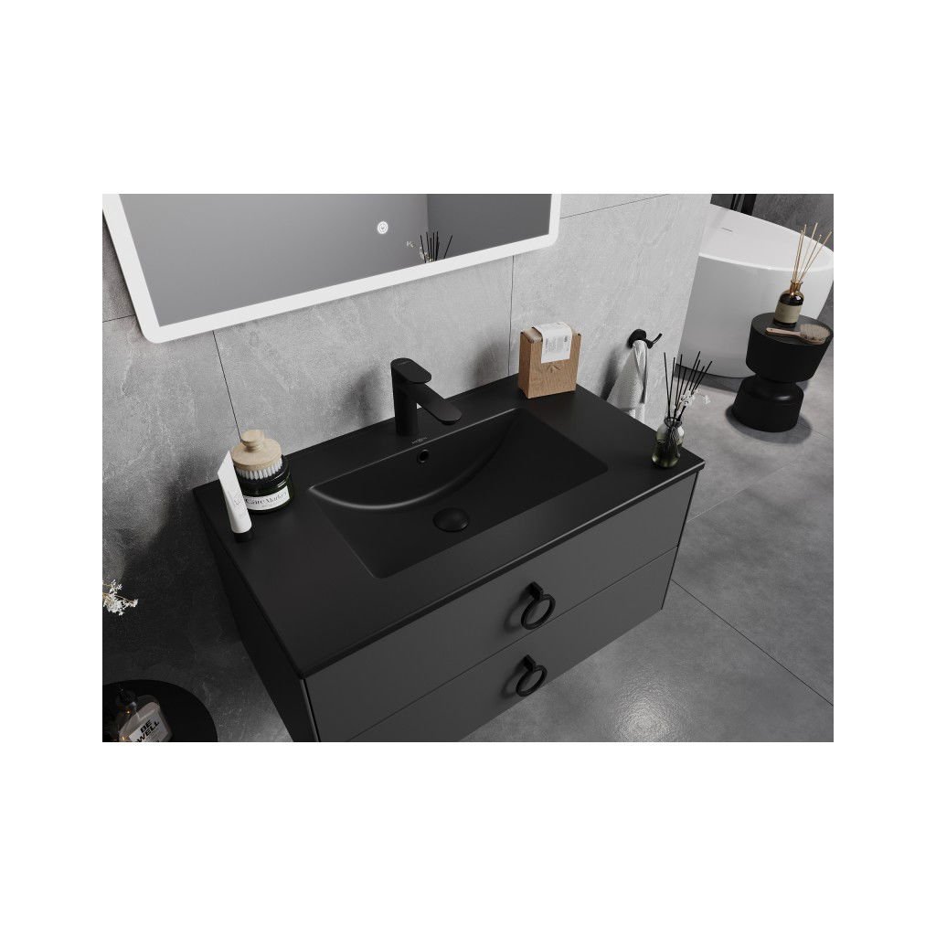 Mexen Atena, umývadlo na zapustenie do dosky 81 x 46 cm, čierna matná, 25018070