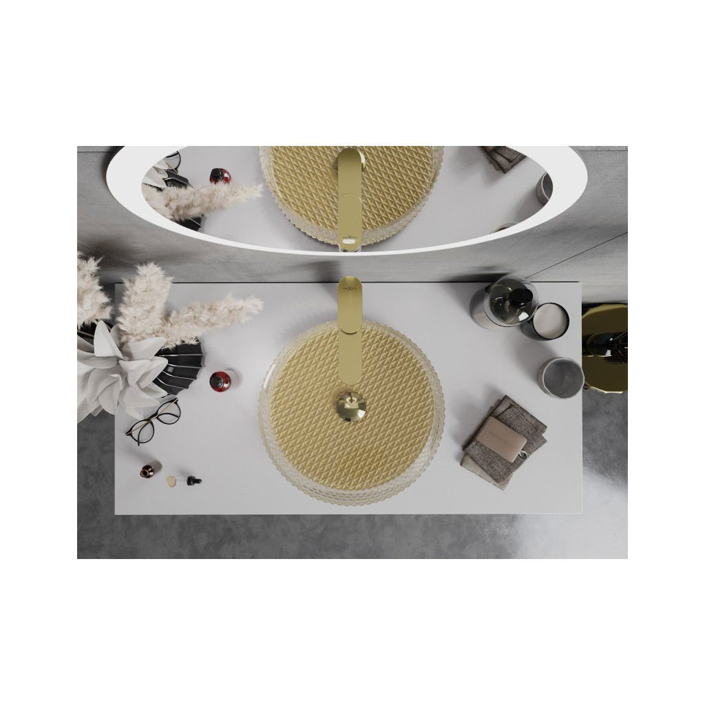 Mexen Aura, sklenené umývadlo na dosku 39 × 39 cm, číra / zlatá, 24013951