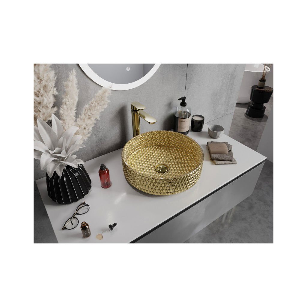 Mexen Aura, sklenené umývadlo na dosku 39 × 39 cm, zlatá, 24013952