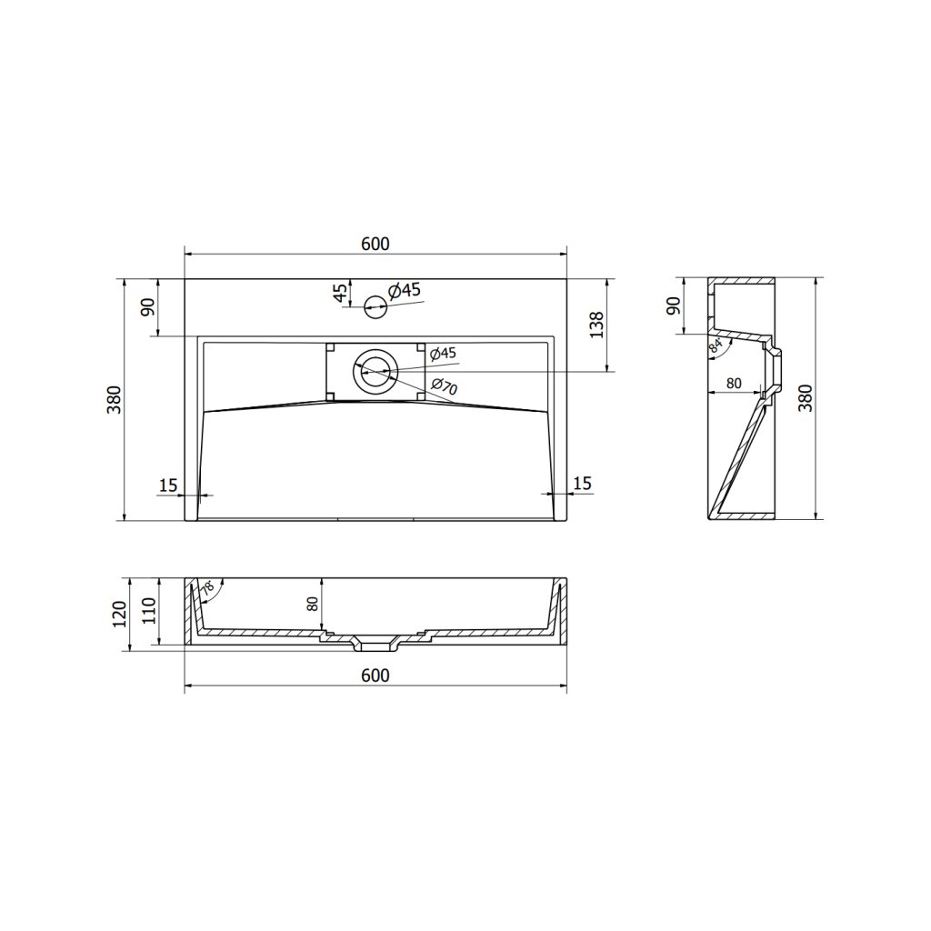 Mexen Ava, umývadlo na dosku z konglomerátu 1/O 60 x 38 cm, čierna matná, 23016071