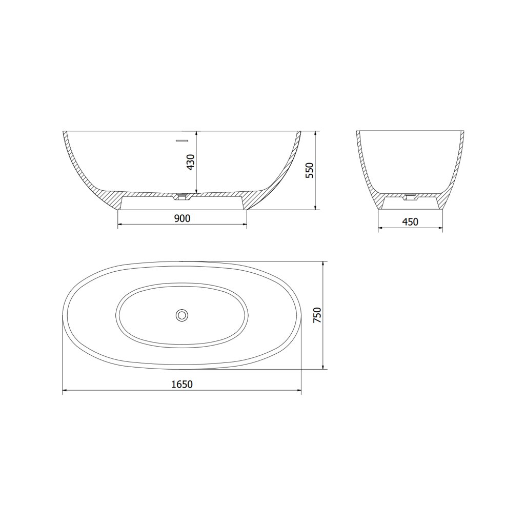 Mexen Bari, voľne stojaca vaňa z konglomerátu 165 x 75 cm, čierna matná, 57221657570