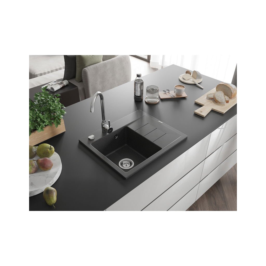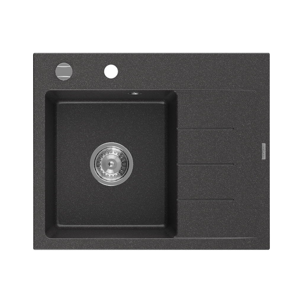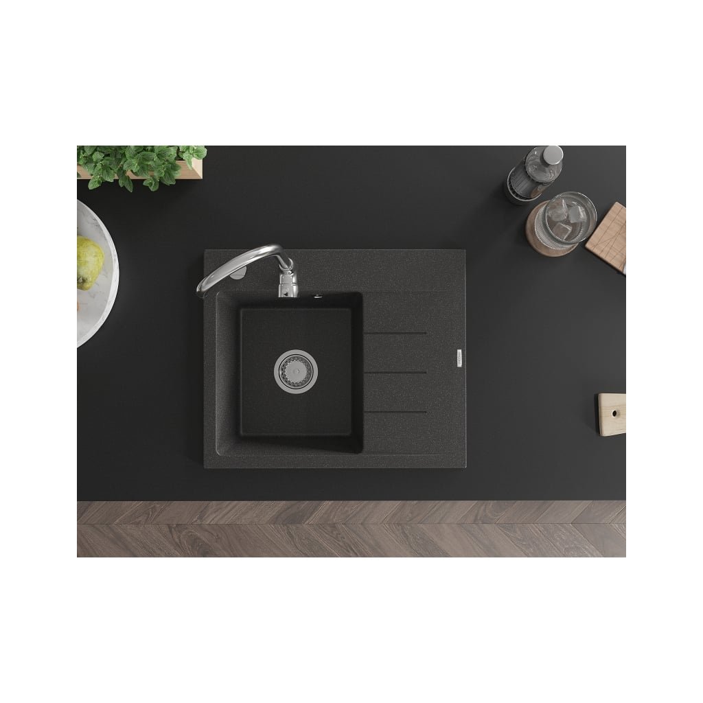 Mexen Ben, 1-komorový granitový drez 600x500x190 mm, ľavý+ chrómový sifón, čierna škvrtnitá, 6522605000-76