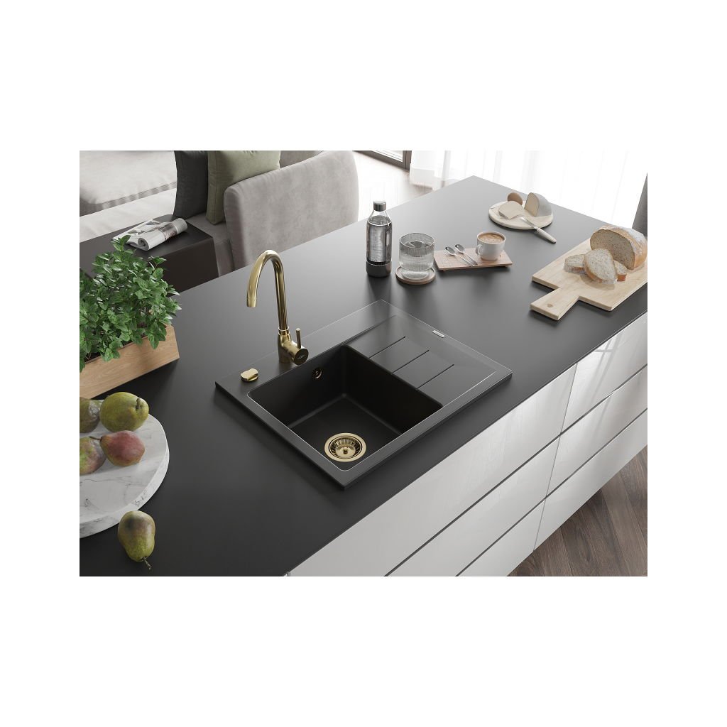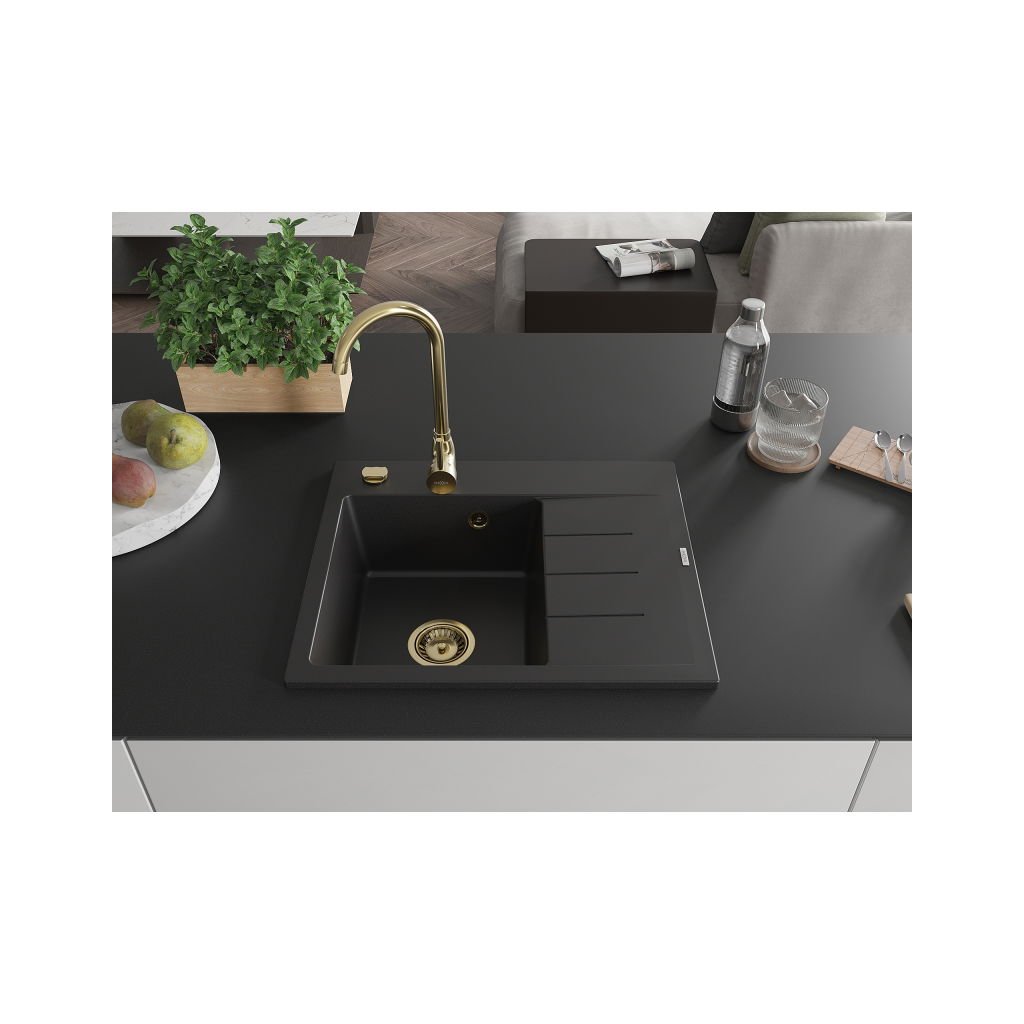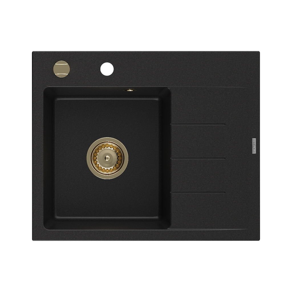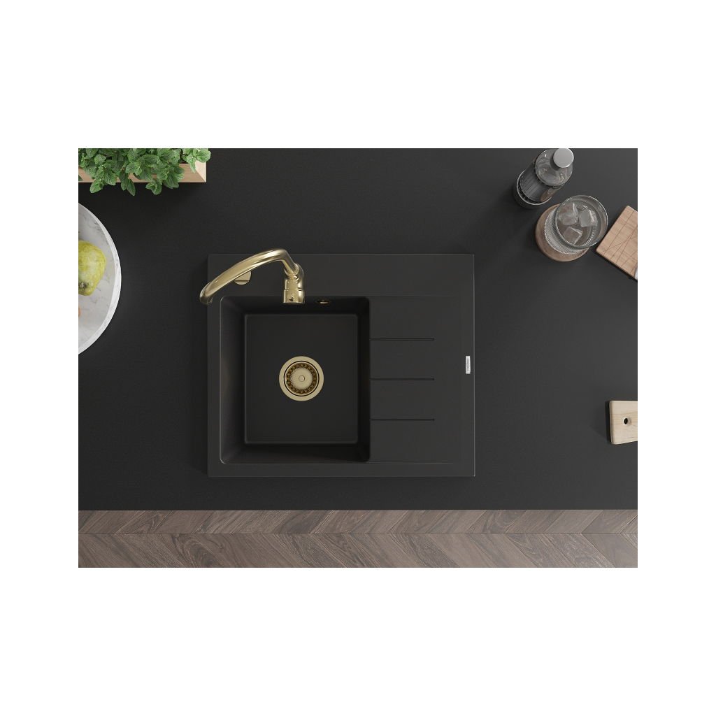Mexen Ben, 1-komorový granitový drez 600x500x190 mm, ľavý + zlatý sifón, čierna, 6522605000-77-G
