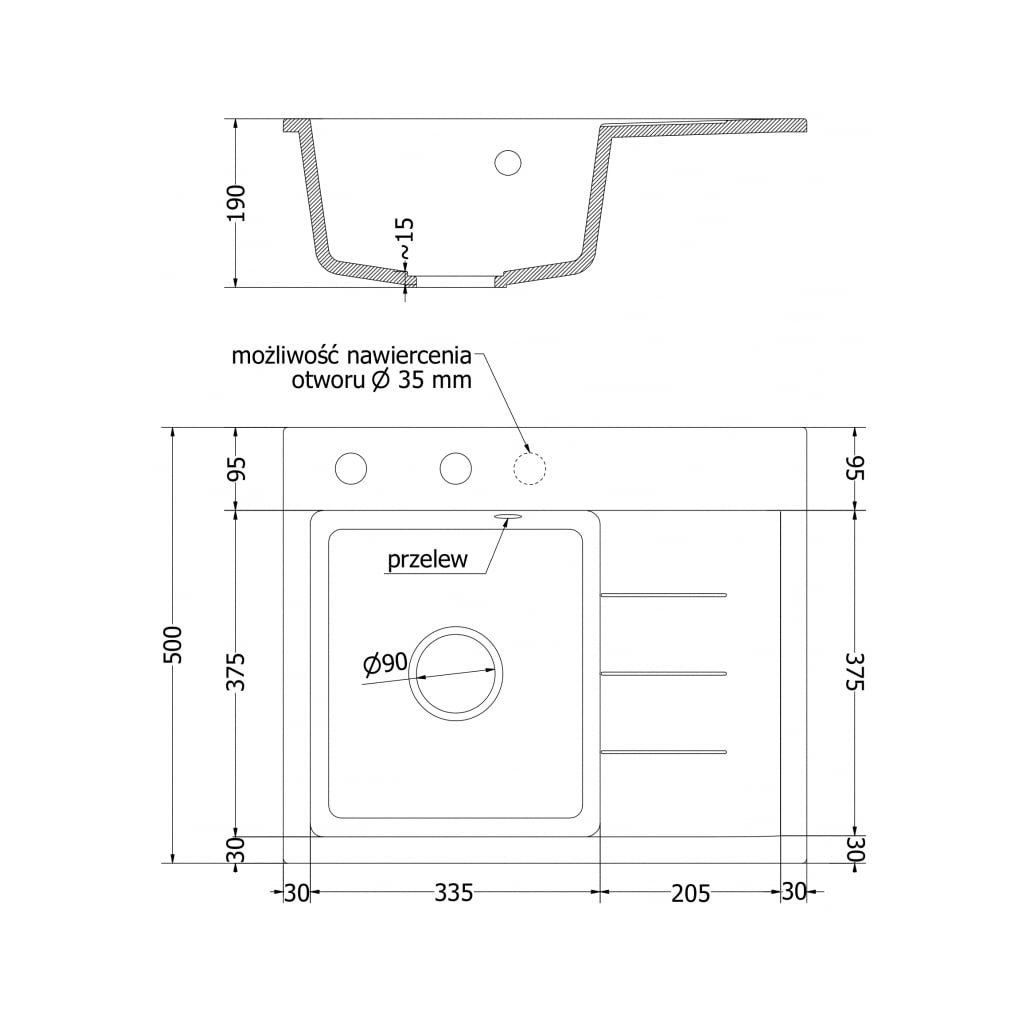- Jeden dodatočný vyfrézovaný otvor pre samodierovanie ø35