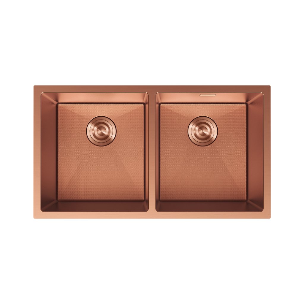 Mexen Binox, 2-komorový nerezový drez 800 x 450 mm, brúsená meď, vzor voština, 6421802000-65HC