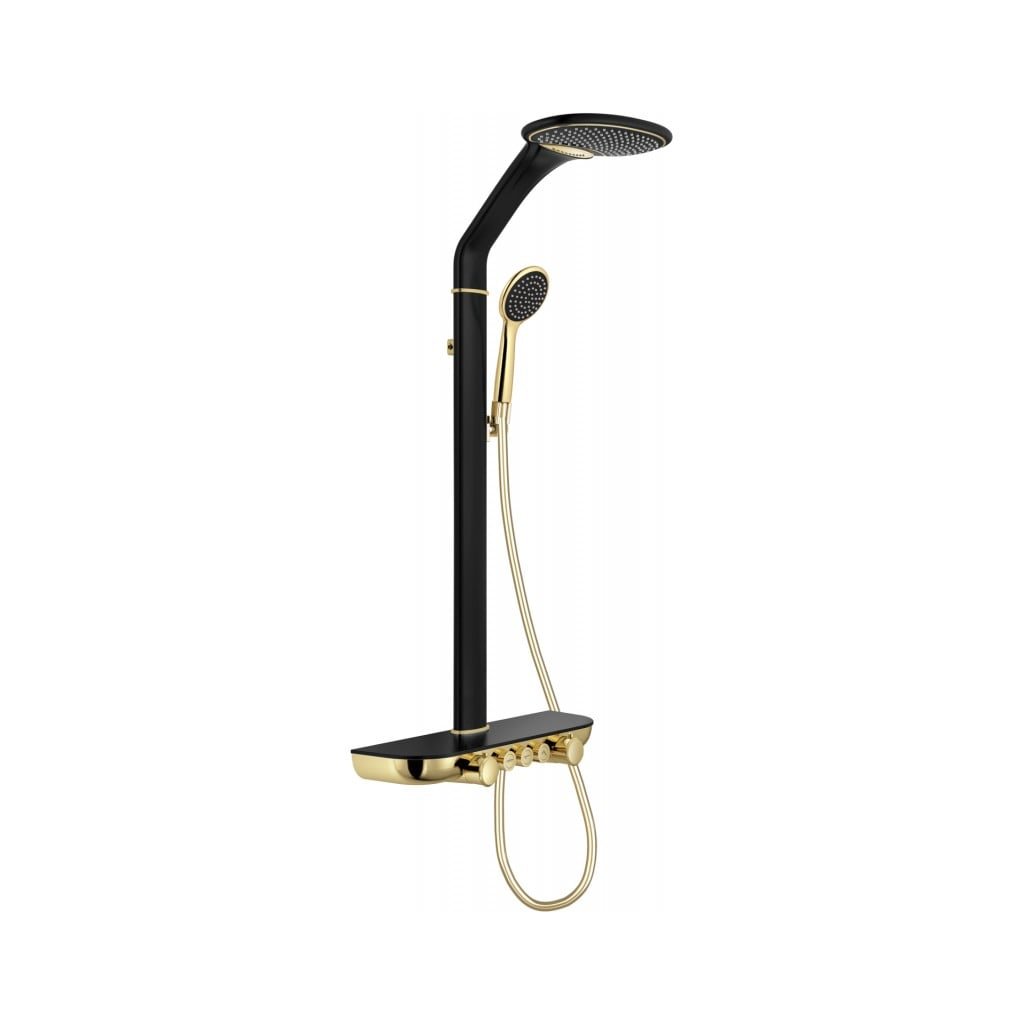 Mexen Bolt, sprchová sada s ručnou a dažďovou hlavicou, čierna-zlatá, 78108-75
