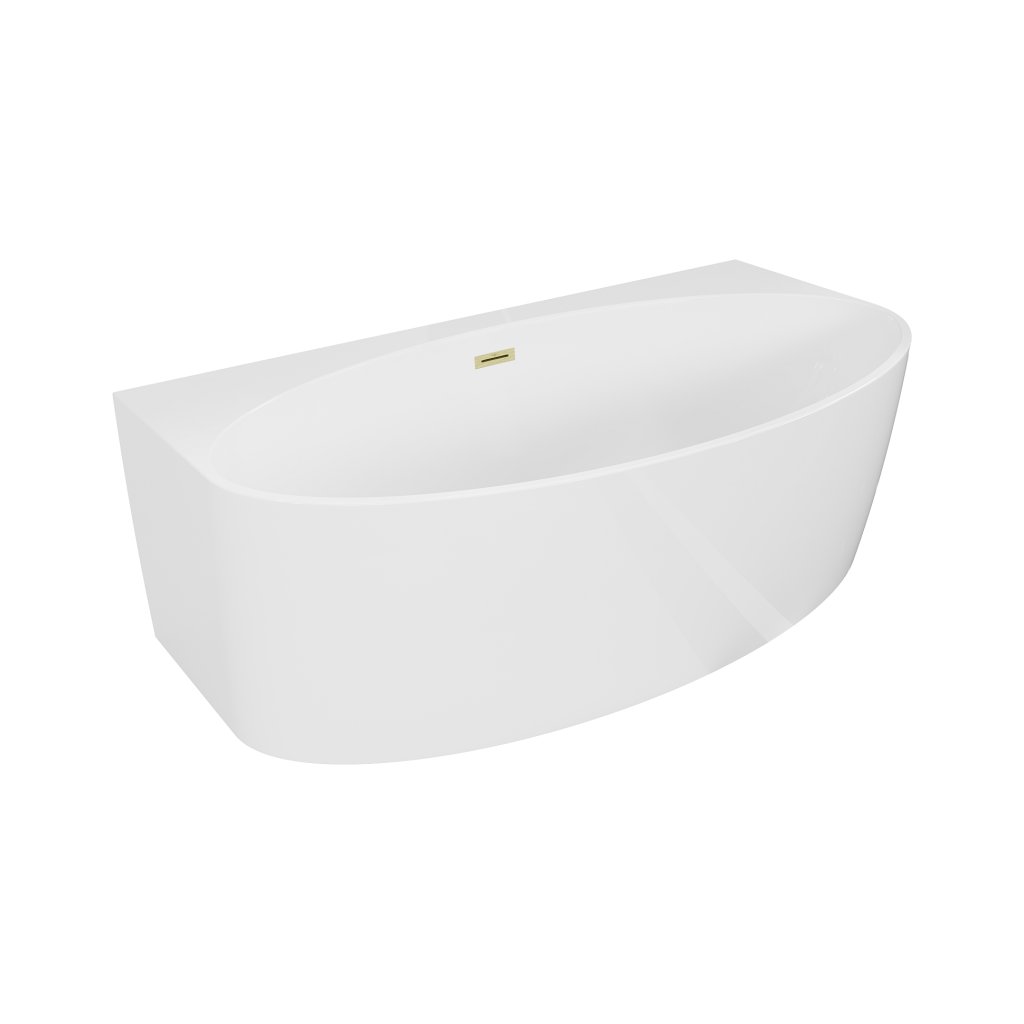 Mexen Bruna, voľne stojaca vaňa ku stene 150 x 82 cm, biela lesklá, zlatý matný prepad, 52731508200-55