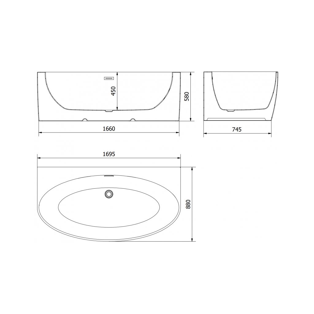 Mexen Bruna, voľne stojaca vaňa ku stene 170 x 88 cm, biela lesklá, biely prepad, 52731708800-20