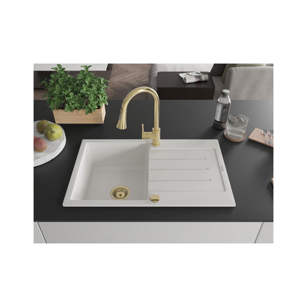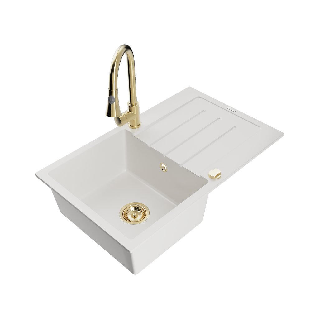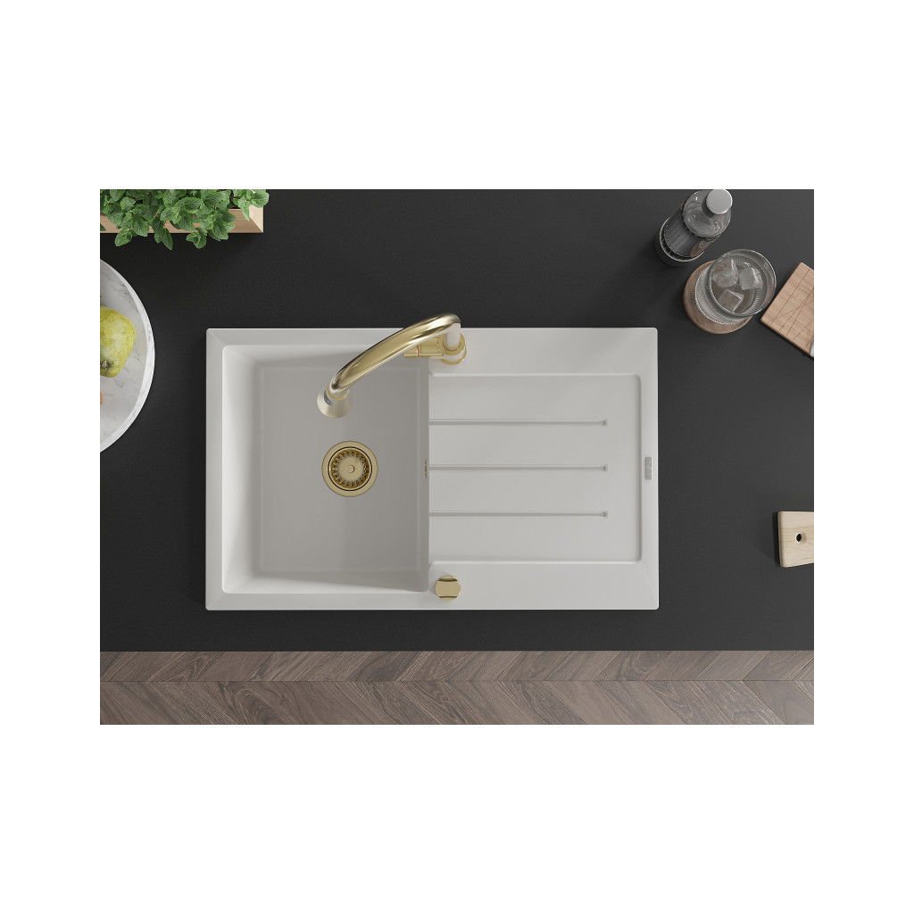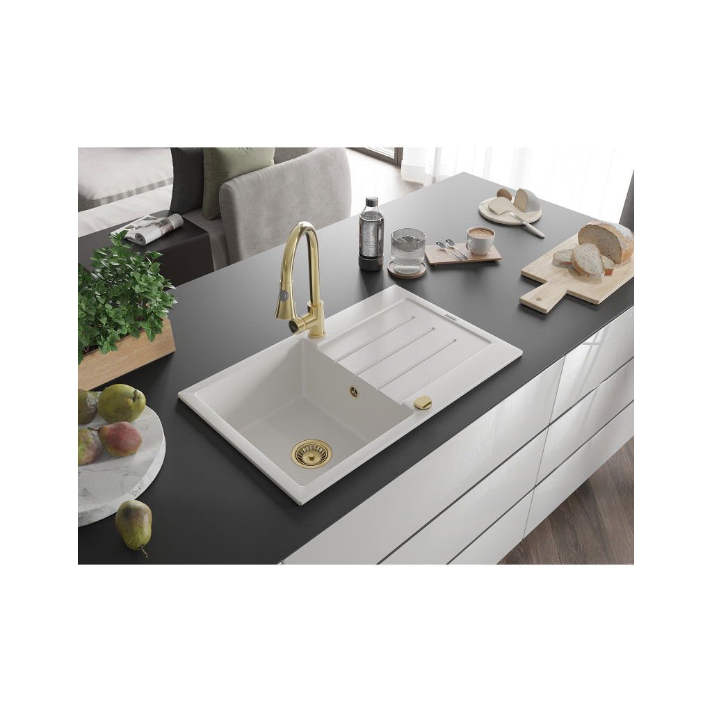 Mexen Bruno, 1-komorový granitový drez 795x495x200 mm a drezová batéria Elia, biela, 6513-20-670101-50