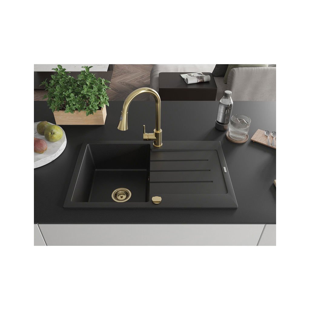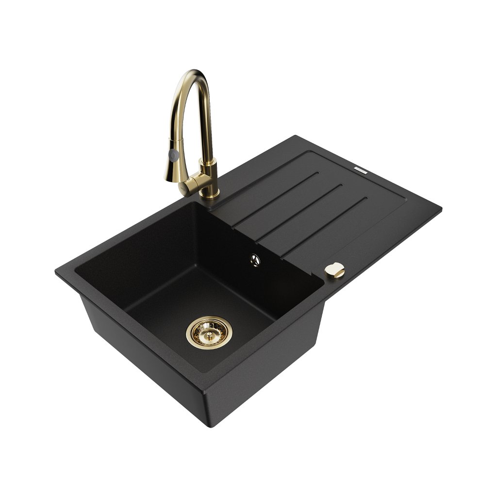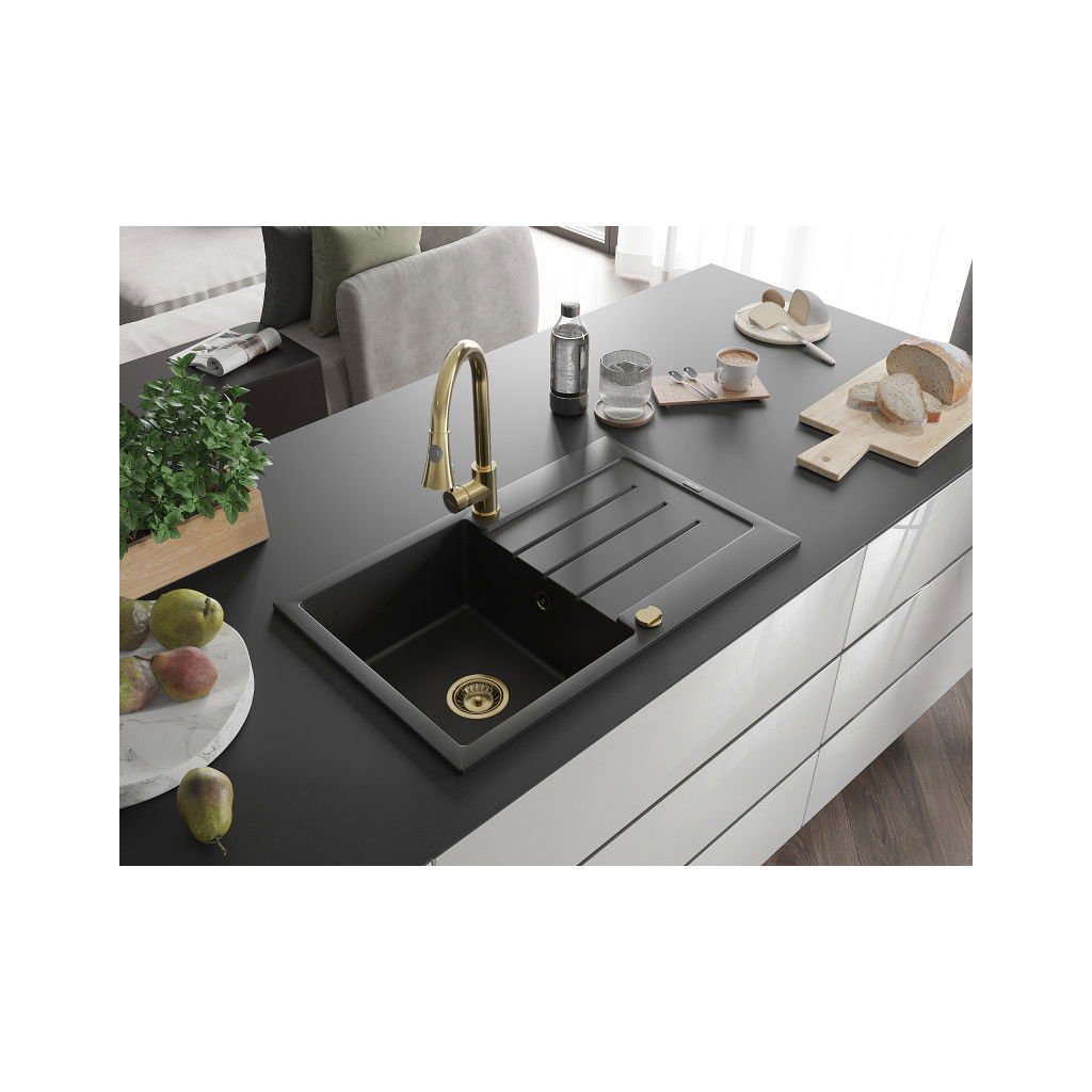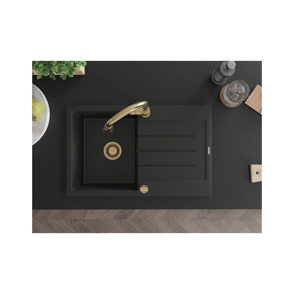 Mexen Bruno, 1-komorový granitový drez 795x495x200 mm a drezová batéria Elia, čierna, 6513-77-670101-50