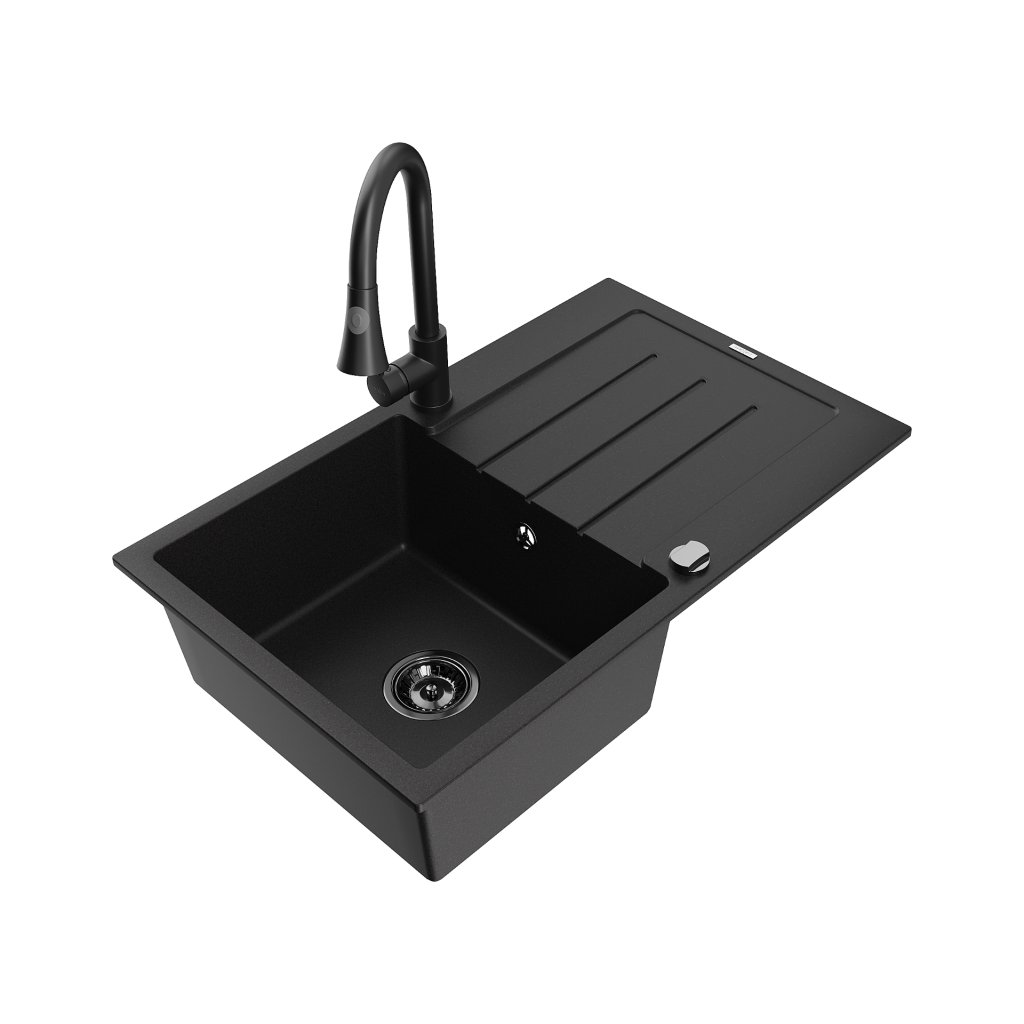 Mexen Bruno, 1-komorový granitový drez 795x495x200 mm a drezová batéria Elia, čierna, 6513-77-670101-70-B