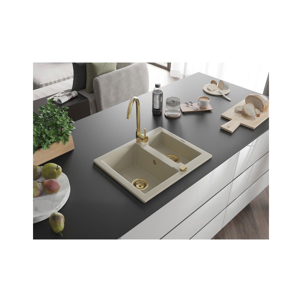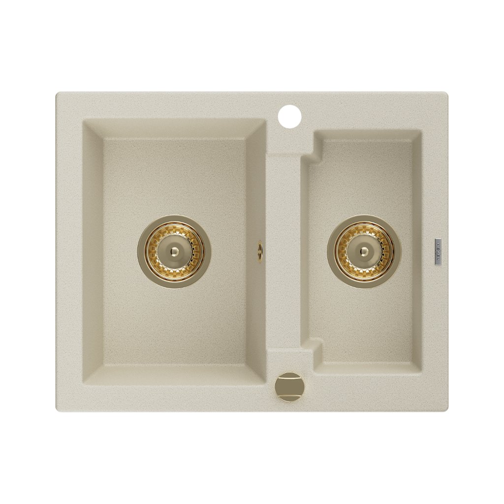 Mexen Carlos, granitový drez 582x475x177 mm, 1,5-komorový, béžová so zlatým sifónom, 6518581500-69-G