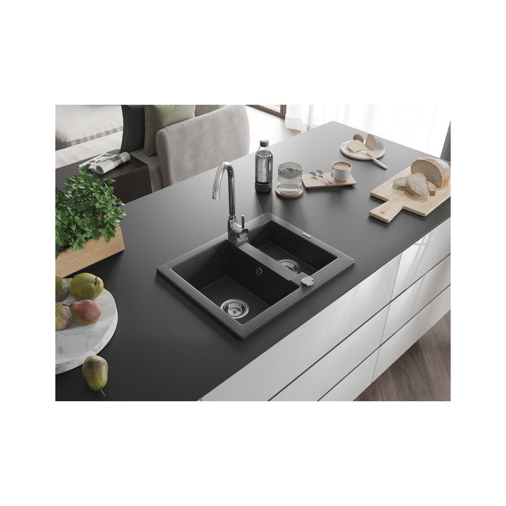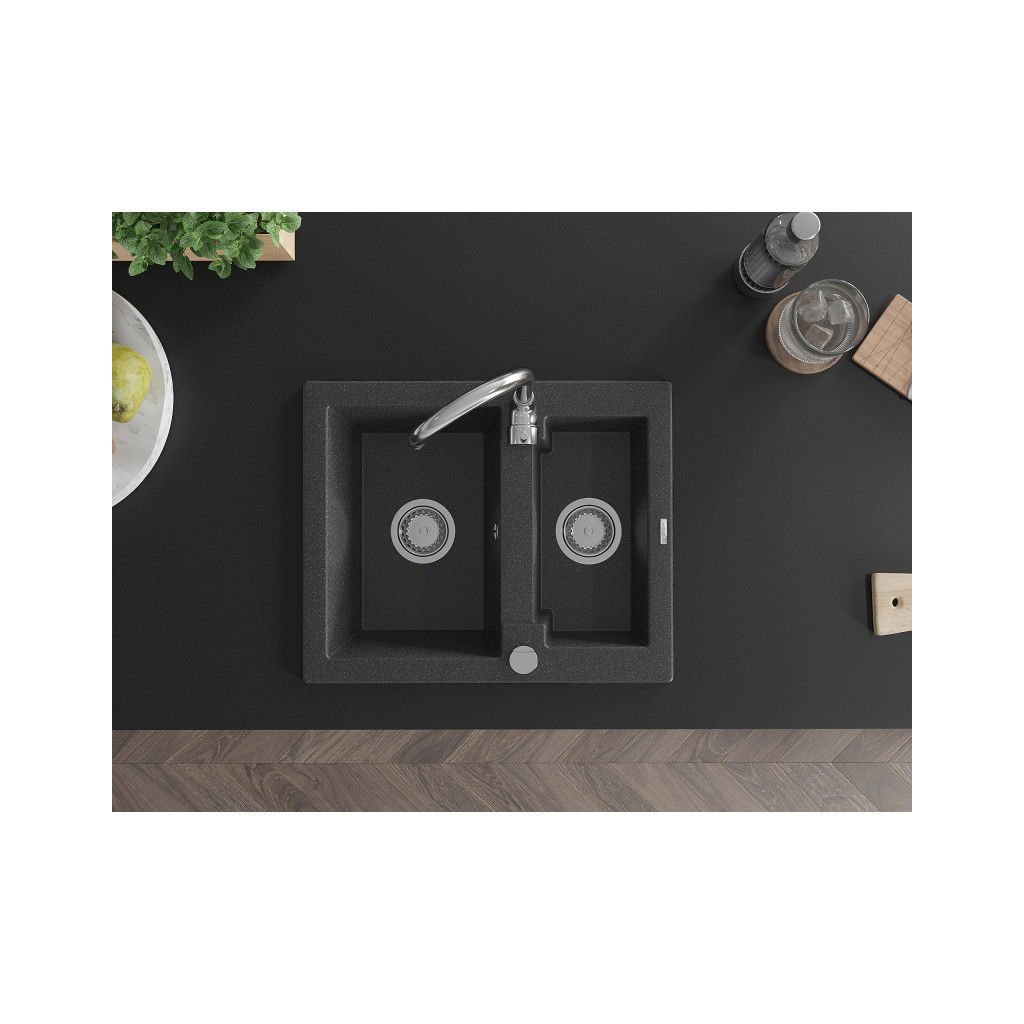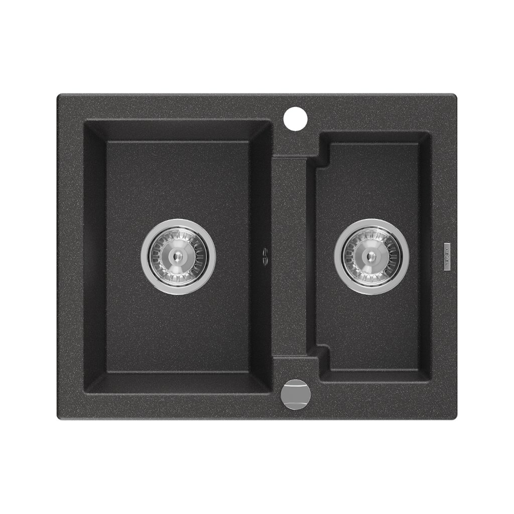 Mexen Carlos, granitový drez 582x475x177 mm, 1,5-komorový, čierna škvrnitá, 6518581500-76