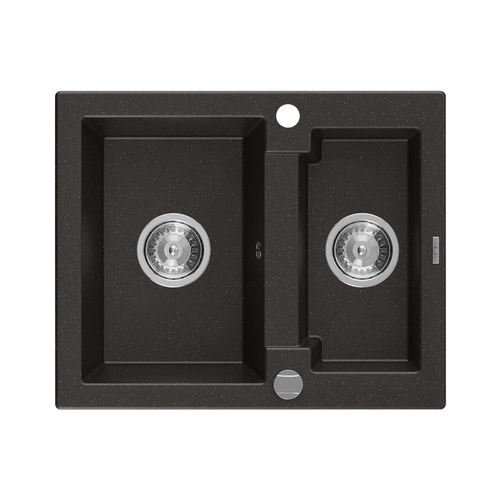 Mexen Carlos, granitový drez 582x475x177 mm, 1,5-komorový, čierna-zlatá metalíza, 6518581500-75