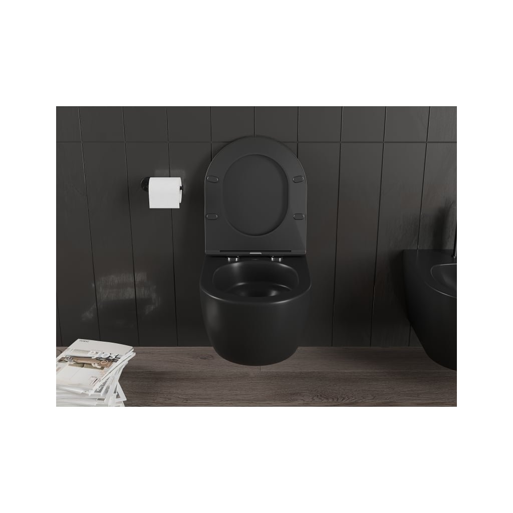Mexen Carmen, závesná WC misa 490x365x340 mm, Rimless Tornádo, čierna matná, 3388XX85T