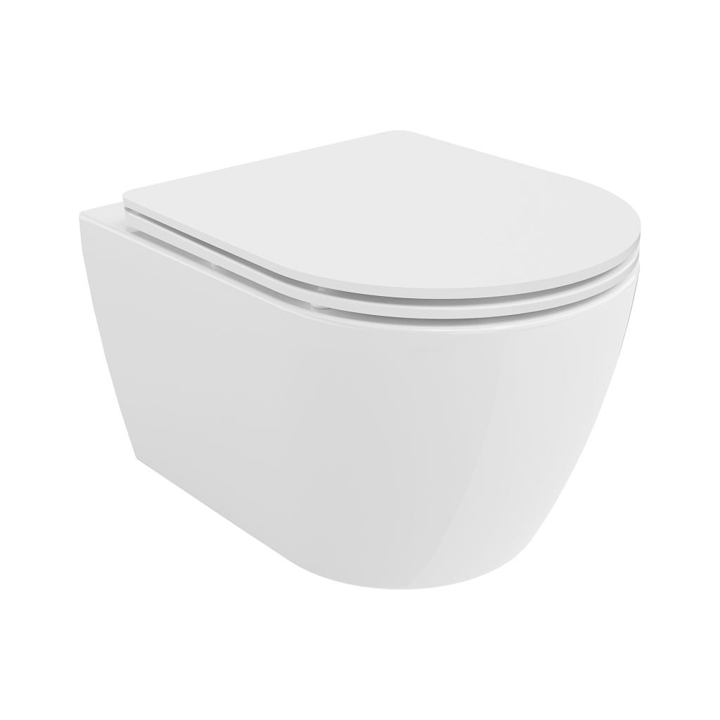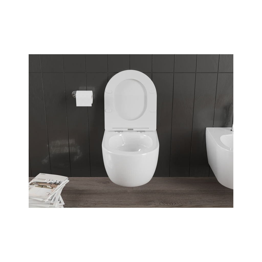 Mexen Carmen, závesná WC misa 490x365x340 mm, Rimless Tornádo + WC sedadlo z duroplastu, biela lesklá, 30880300T