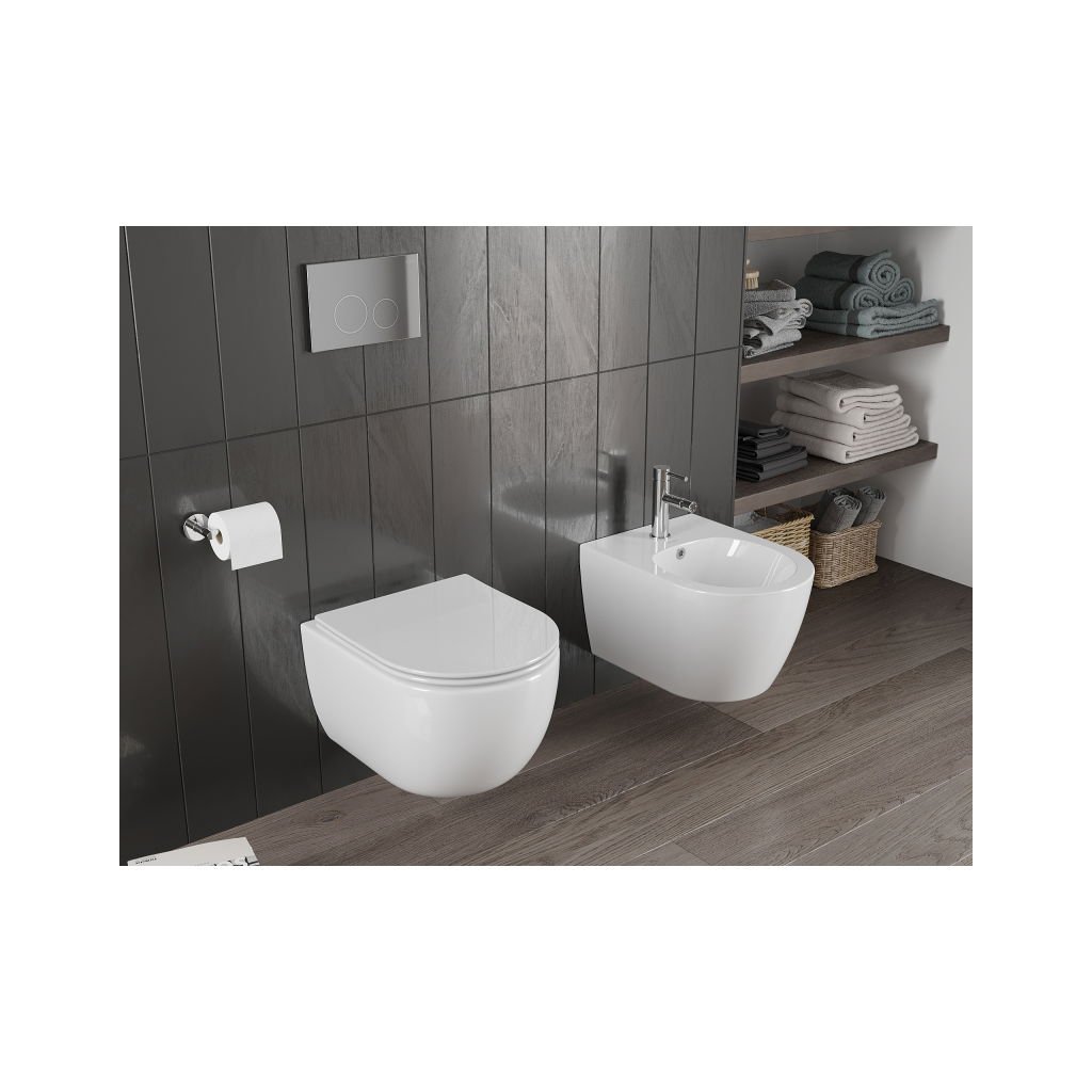 Mexen Carmen, závesná WC misa 490x365x340 mm, Rimless Tornádo + WC sedadlo z duroplastu, biela lesklá, 30880400T