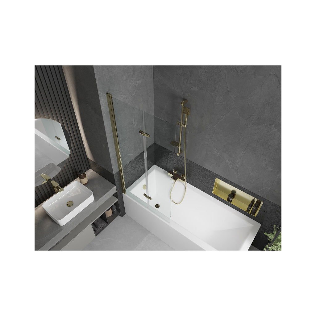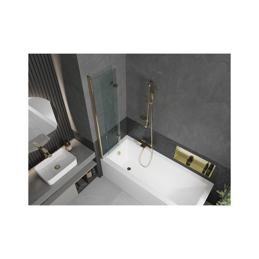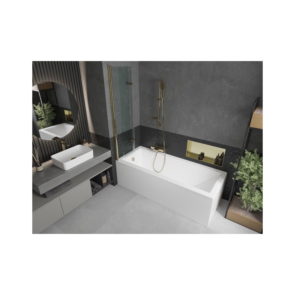 Mexen Castor, vaňová zástena 2-krídlová 80 x 150 cm, otočné krídlo, 6 mm číre sklo, zlatý profil, 892-080-002-50-00