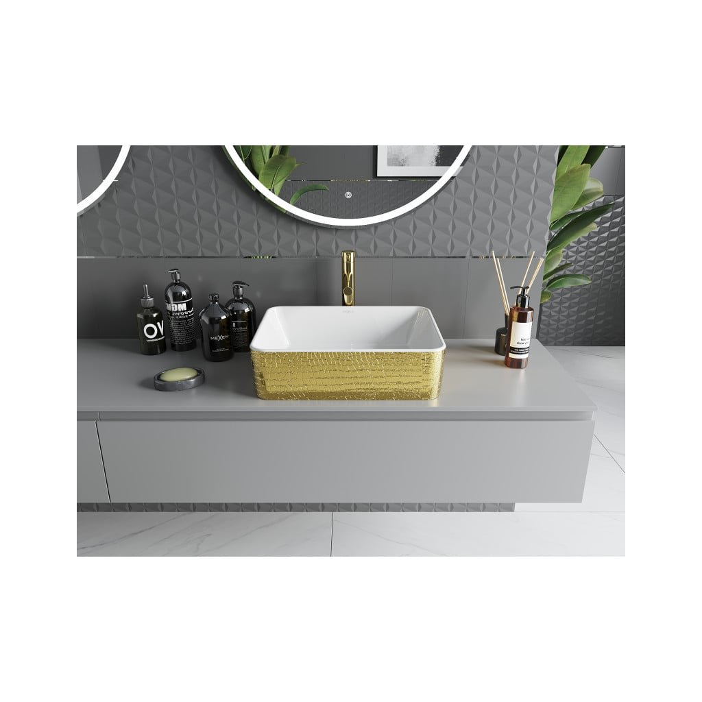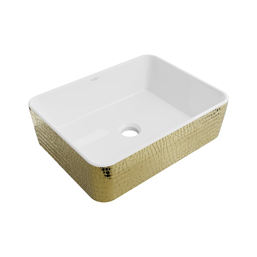 Mexen Catia, umývadlo na dosku 48x37x14 cm, biela lesklá-zlatý vzor, 21314808