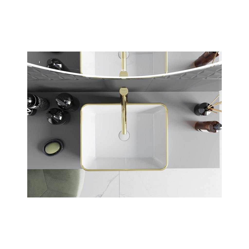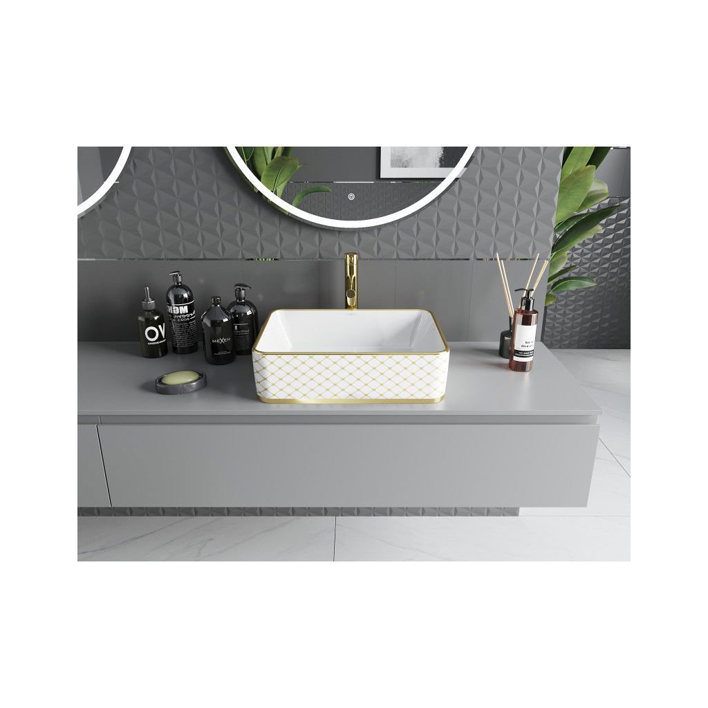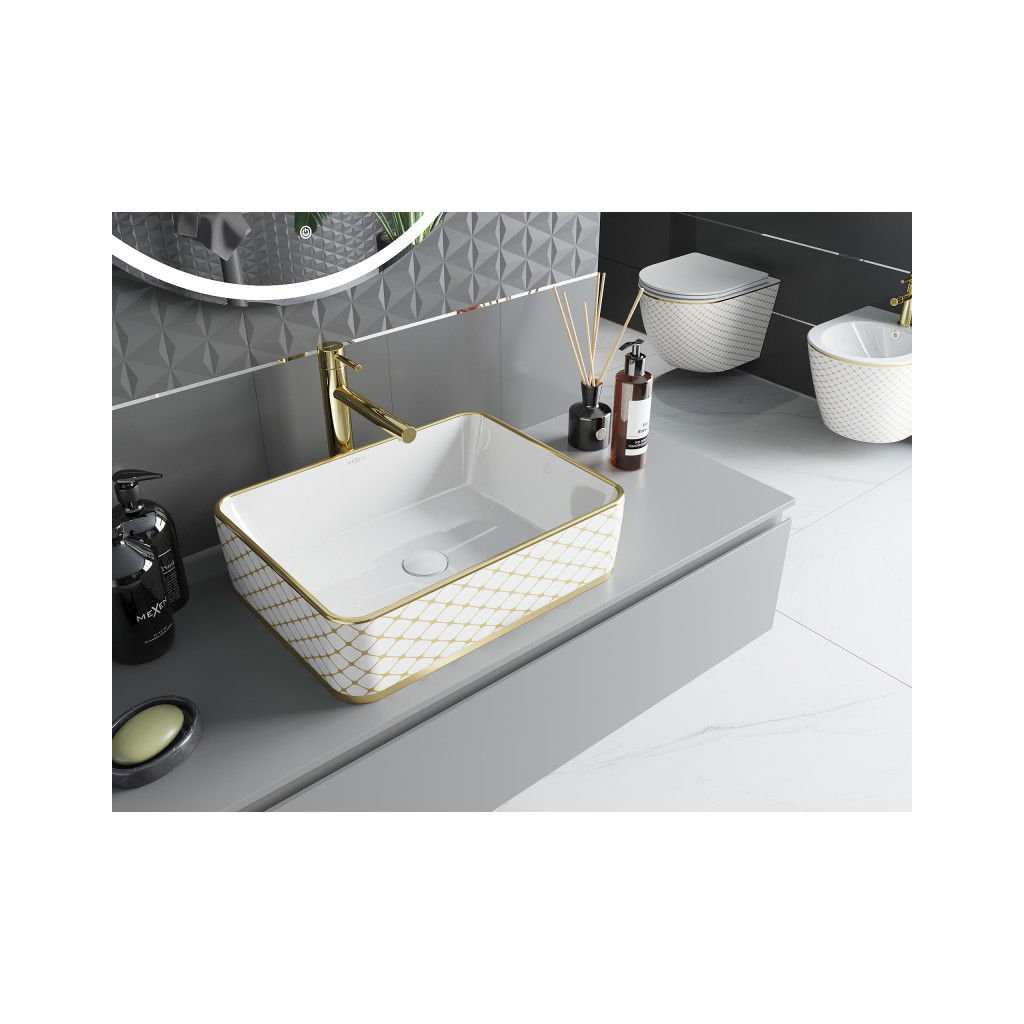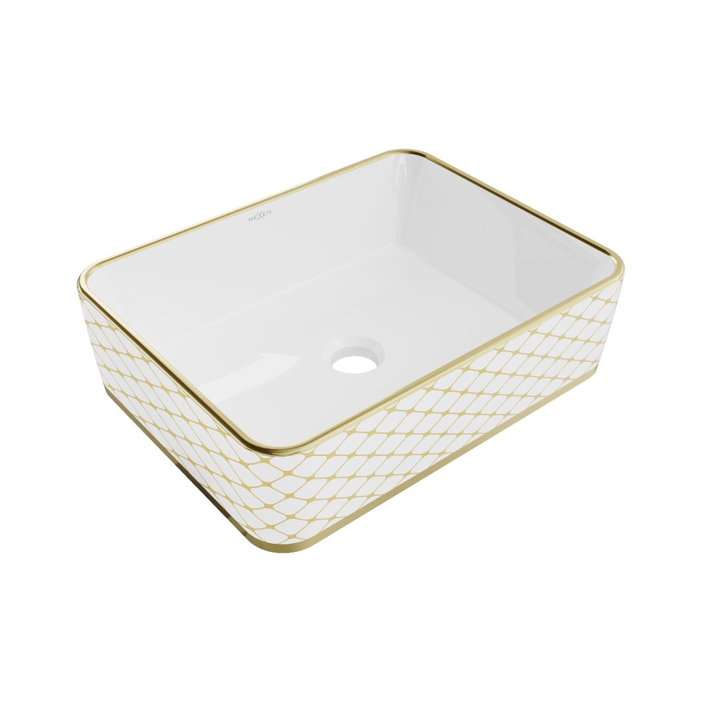 Mexen Catia, umývadlo na dosku 48x37x14 cm, biela lesklá-zlatý vzor, 21314809